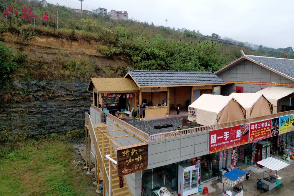 水潦场镇,“电商创客”樊朋飞计划将服务延伸至对岸村落,让农产品借互联网远销;建材商胡云健建起的酒楼,春节半个月盈利就达上万元;村民王松涛的“桥头咖啡”迎来了三省游客,年底还想通过直播带货,销售村里种植的甜橙、腊肉……