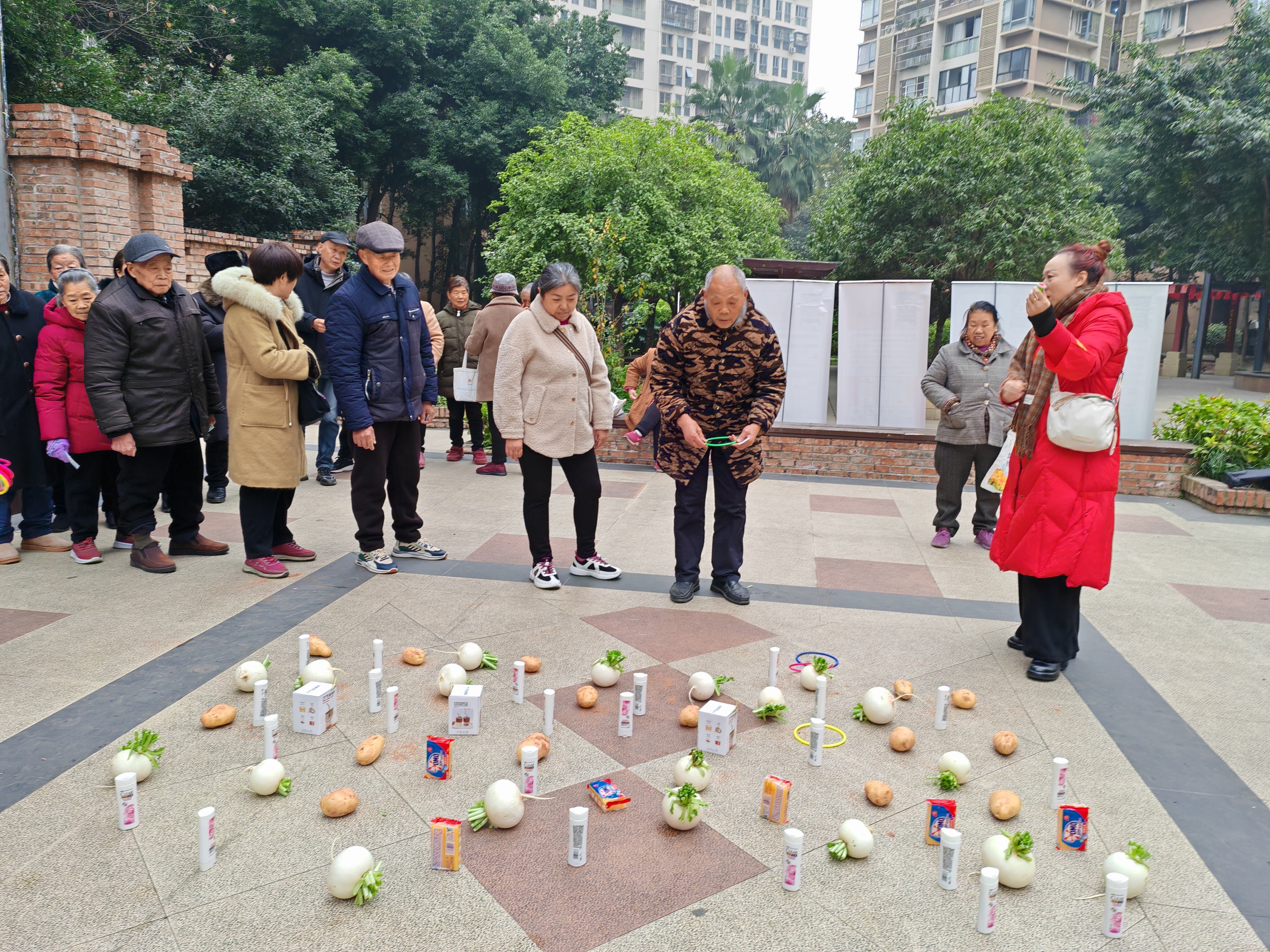 安全宣教区里,图文并茂的展架直观呈现反诈案例与消防常识,志愿者手把手指导居民认识标识牌道具,实用知识在实操体验中入脑入心;垃圾分类趣味互动区前,老年居民有序排队参与分类答题,垃圾分类大转盘、垃圾分类飞镖游戏让居民们在玩乐中掌握知识,欢声笑语此起彼伏;幸运套圈区堪称人气焦点,居民们瞄准目标、抬手投掷,掌声不断,套圈圈赢蔬菜活动更是将氛围推向高潮,鲜嫩的蔬菜奖品、实用的日用品不仅承载着生活气息,更传递着绿色低碳的文明理念。