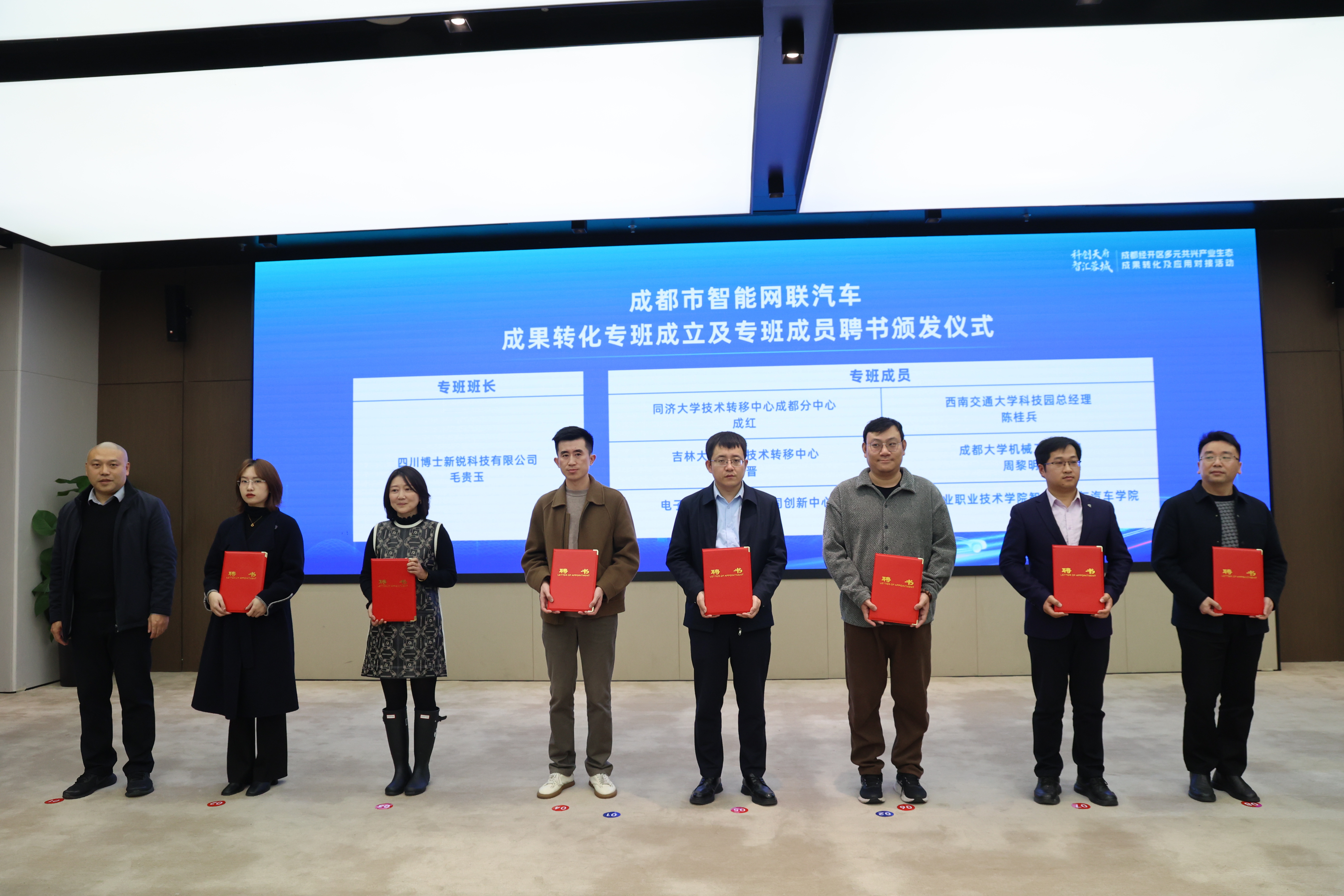 为强化成果转化服务力量,活动发布成立成都市智能网联汽车成果转化专班,并向首批7位来自技术转移机构、高校院所的专员颁发聘书,这标志着成都经开区针对智能网联汽车重点产业搭建起科技成果与企业需求精准对接的桥梁。