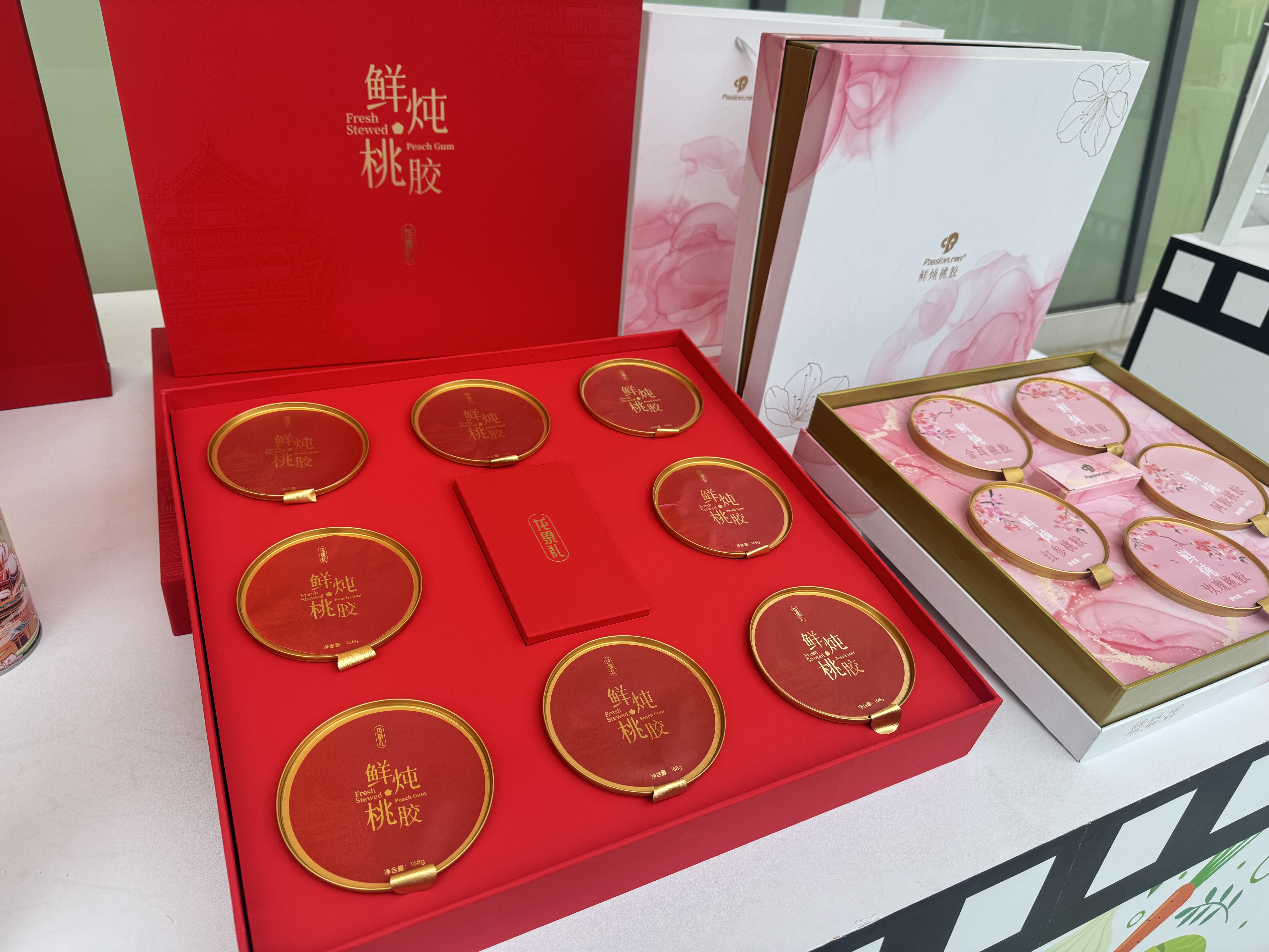其中,“天府丰享汇·全国百味行”农产品展示展销活动设置成都市特装主题馆、全国及四川精装标准展区三大板块,汇聚各地特色优质农产品。成都市级农产品区域公用品牌“天府源”重磅亮相,携“蒲江耙耙柑”“金堂羊肚菌”“龙泉驿水蜜桃”三大精品集中展示,成为现场热点。在龙泉驿水蜜桃展区,虽无鲜桃展出,但水蜜桃酒、桃胶等水蜜桃衍生产品同样备受关注,生动诠释了龙泉驿水蜜桃全产业发展的丰硕成果。