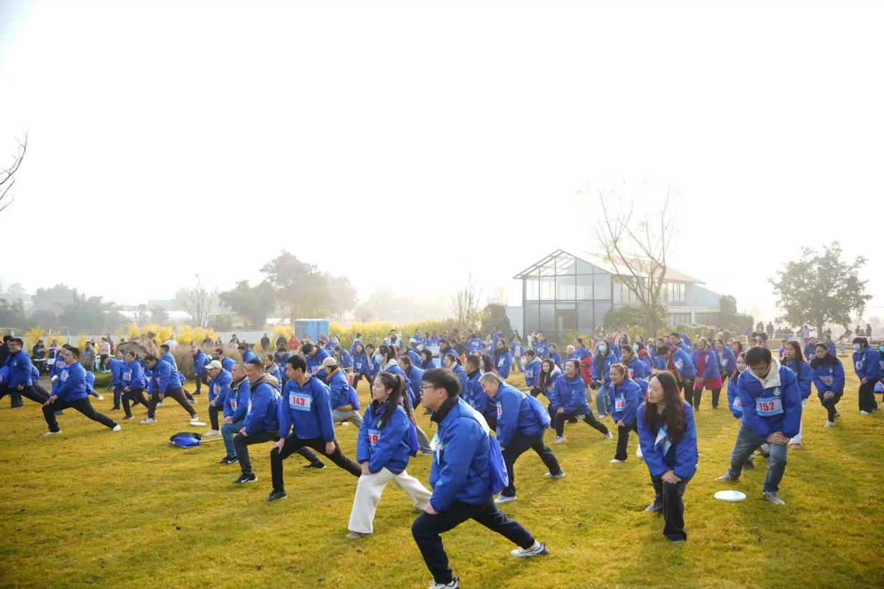 12月11日上午,运动会在激昂的乐曲中拉开帷幕。各参赛队伍精神抖擞、昂首入场,充分展现了东安街道职工居民蓬勃向上的精神风貌。开幕式后,全体参赛选手在运动达人的带领下开展了活力四射的集体热身,随后蹴鞠技巧赛、捶丸比杆赛、飞盘个人投掷赛、飞盘团体接力赛、旱地雪球团体对抗赛、定向徒步穿越赛六大项目依次展开角逐。这些项目兼具文化底蕴与竞技趣味,既是本次赛事的核心内容,也是顶佛寺村未来将持续运营的户外体验项目——选手们在绿茵场上体验古代足球的魅力,在精准挥杆中感受传统捶丸的优雅,在飞盘传递中凝聚团队默契,在徒步穿越中领略乡村风光,智力与体力的双重挑战让赛场充满欢声笑语与竞技激情。
