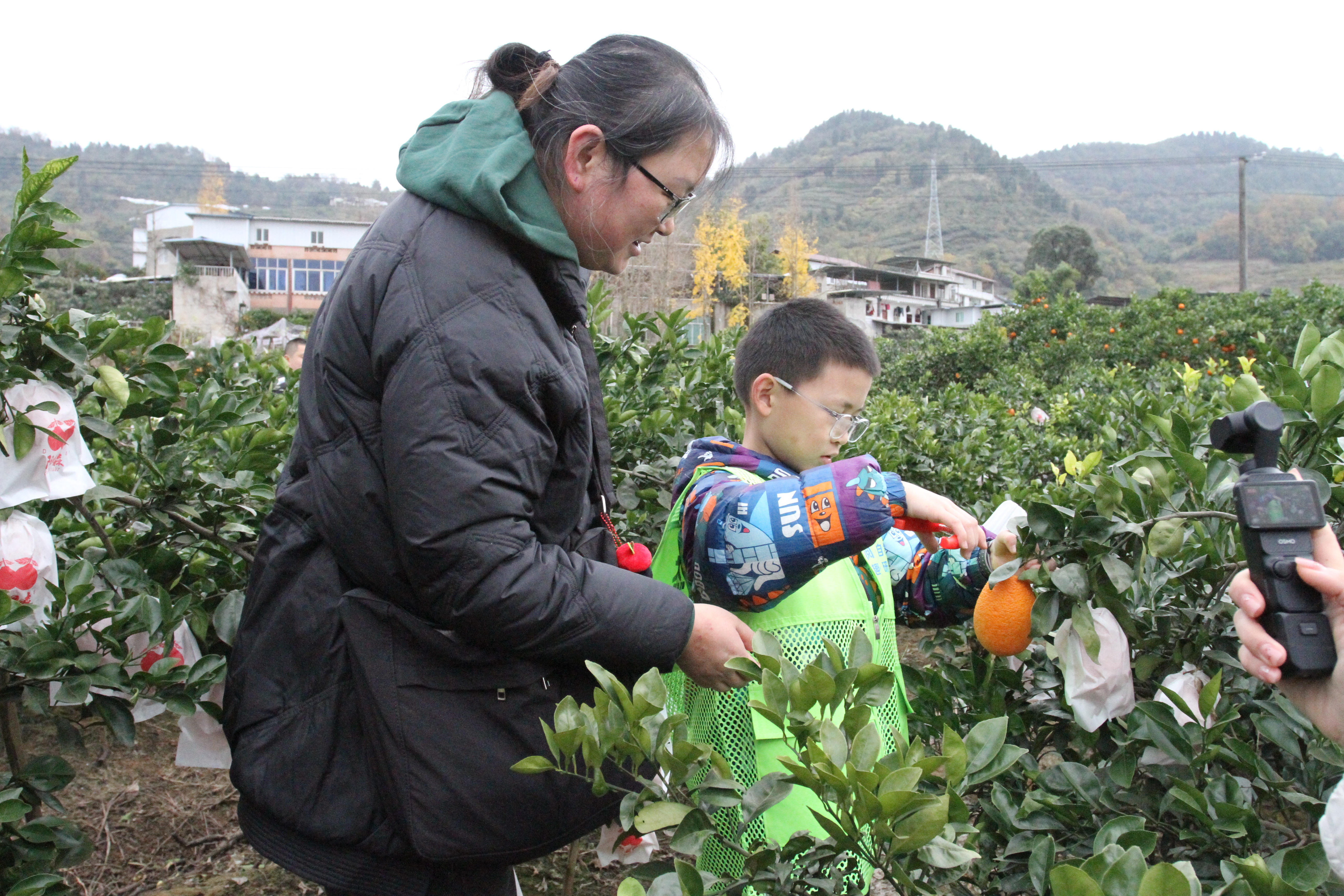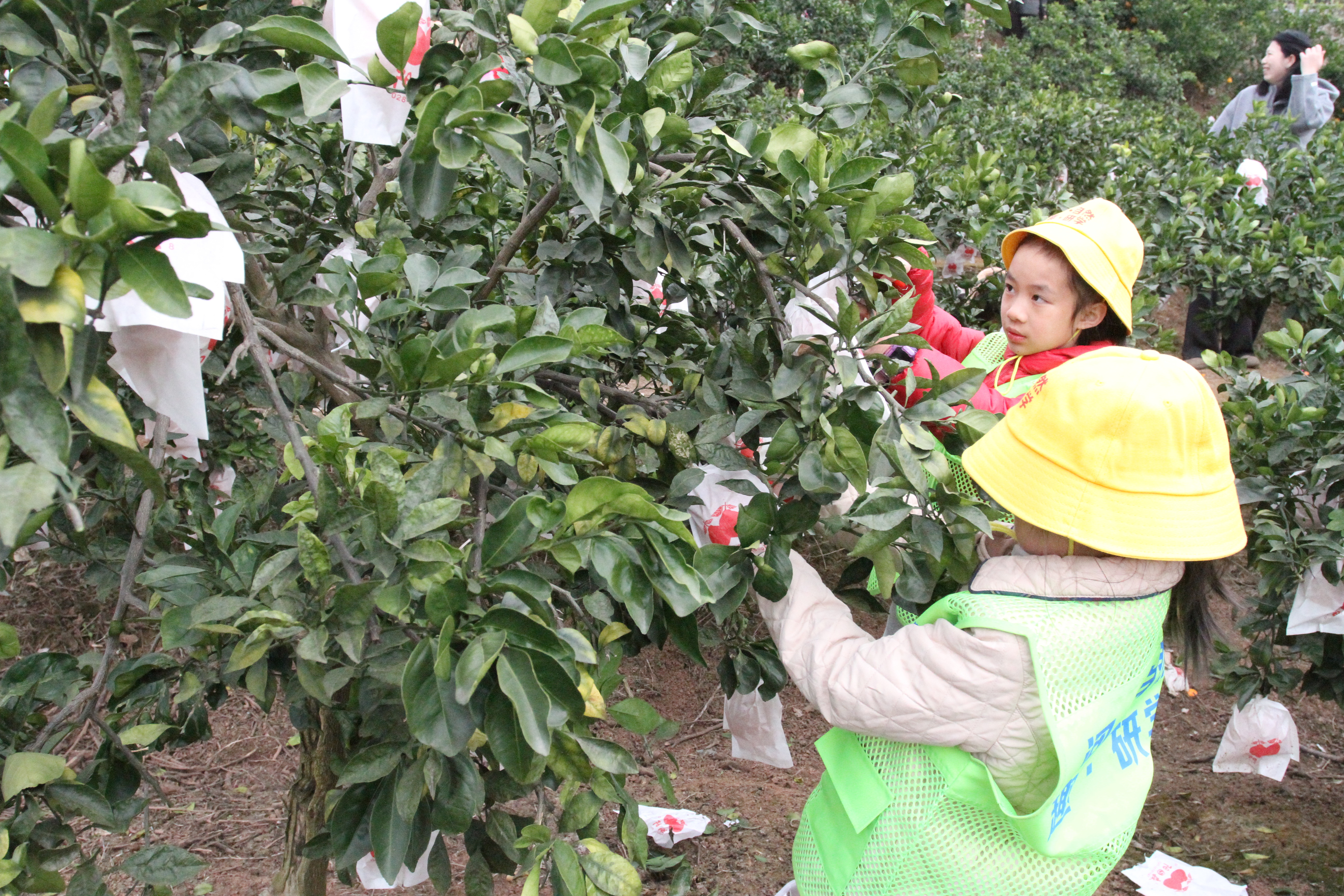 当天下午2点左右,本次活动的“重头戏”——柑橘采摘体验正式开始。50余组家庭提着果篮走进柑橘园,看着挂满枝头的金黄果实,大家兴奋地穿梭在果树间,小心翼翼地摘下成熟的柑橘,大人小孩齐动手,果园里处处洋溢着欢声笑语。