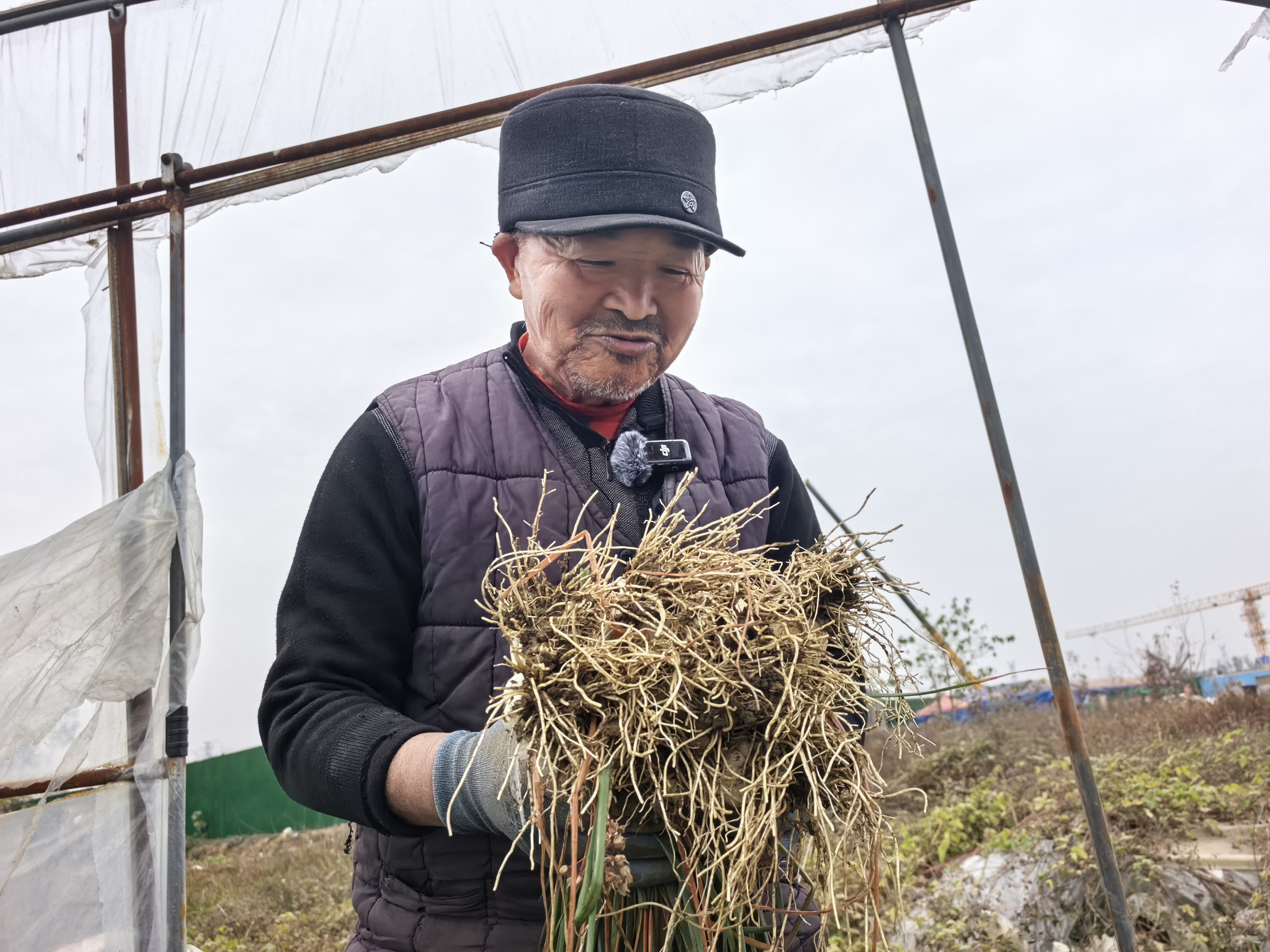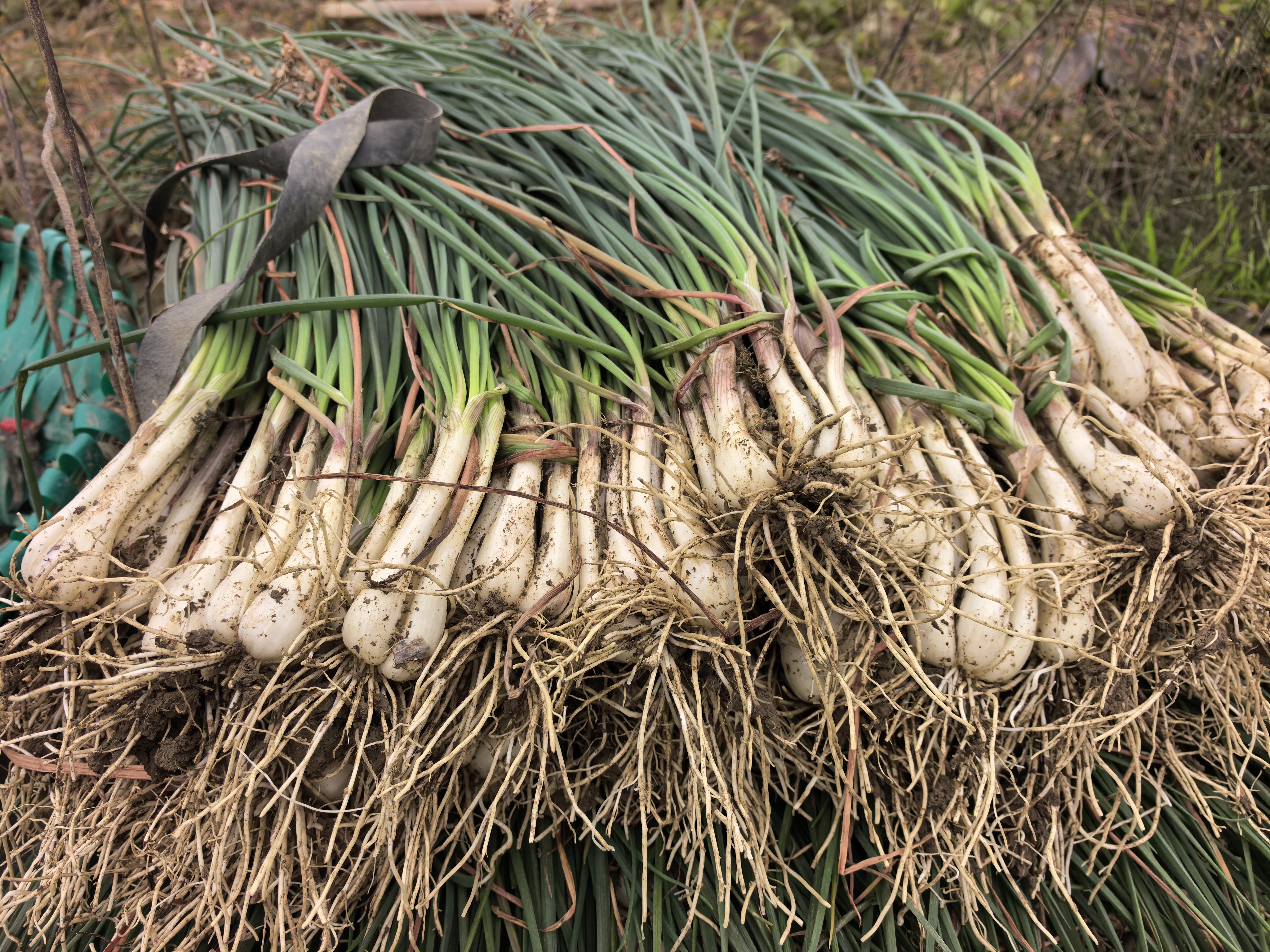 12月15日,冬日的阳光冲破云层照在大地上,西河街道天平村12组,菜农阮立荣正弯腰在一片绿色的菜地里忙碌。用铁锹将一排像葱又像韭菜的小苗撬松,再一株株扯起来拍掉白色根茎上的土,整齐码放在一起。他正在收获的这种像小葱又不是小葱的蔬菜,正是不少成都人都爱的小菜——藠头,用来泡泡菜、用来炒肉,都十分开胃下饭,是不少人心中的心头好。
