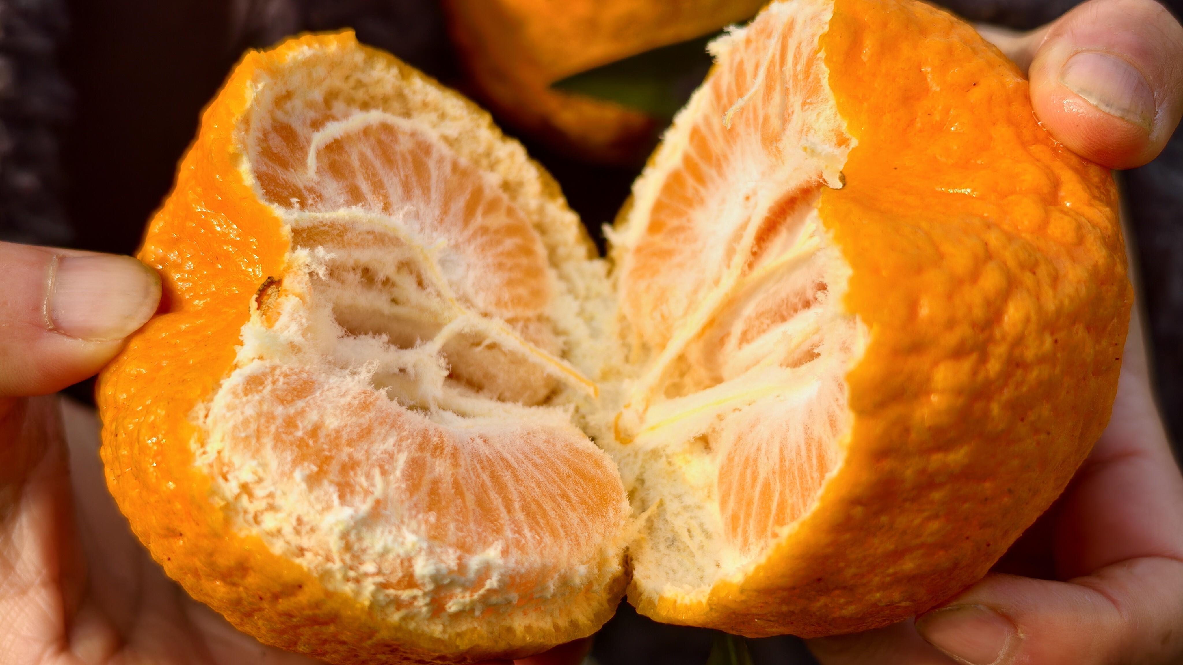 “我们家种了5亩椪柑,这果子水分足、口感甜,皮还好剥!”在长丰村2组种植户郑秀英的果园里,她随手摘下一个椪柑,指尖轻轻一剥,薄薄的果皮便轻松脱落,露出饱满晶莹的橘瓣。轻轻掰下一瓣放入口中,清甜的汁水瞬间在舌尖迸发,脆嫩的果肉入口即化,余味中还带着淡淡的果香,让人回味无穷。郑秀英笑着说,为了种出好果子,她从开春施肥、花期管理到病虫害防治,每个环节都不敢马虎。