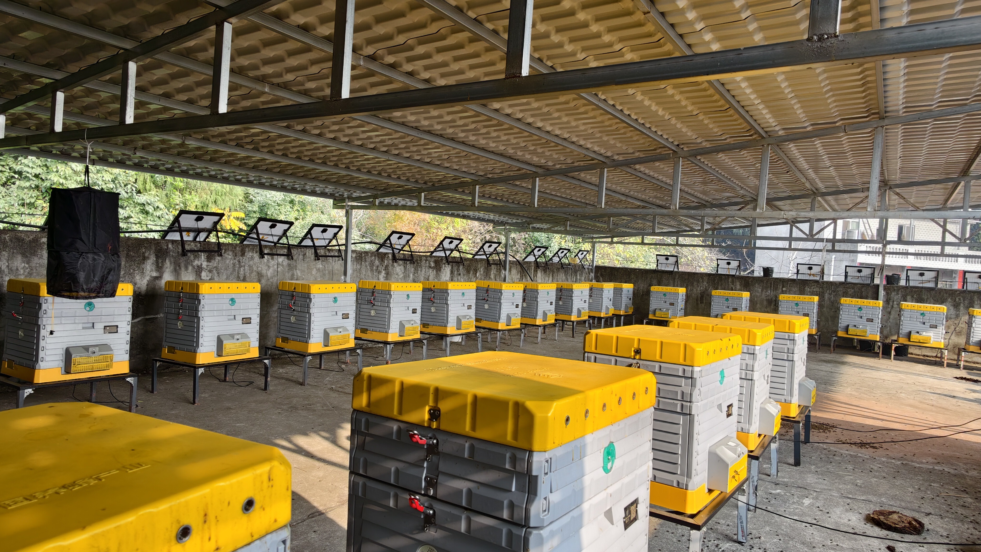“这是我们的智能蜂箱,它能精准控制箱内的温度和湿度,还能实时监测蜜蜂每天的进出量,让养蜂变得科学又高效。”长丰村党支部委员曾璐指着一排排蜂箱介绍道。据了解,该村智能养蜂项目于2025年4月正式投入使用,目前共有55个智能蜂箱,11个传统蜂箱。
