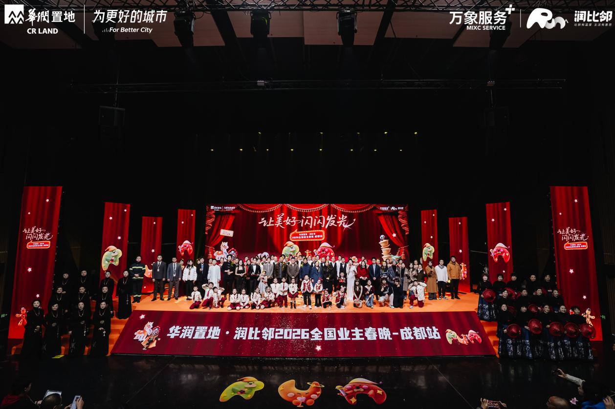 2026年1月11日,华润置地•润比邻2026全国业主春晚成都站在东安湖大剧院温情启幕,以“让美好 闪闪发光”为主题打造Bling星光之夜。