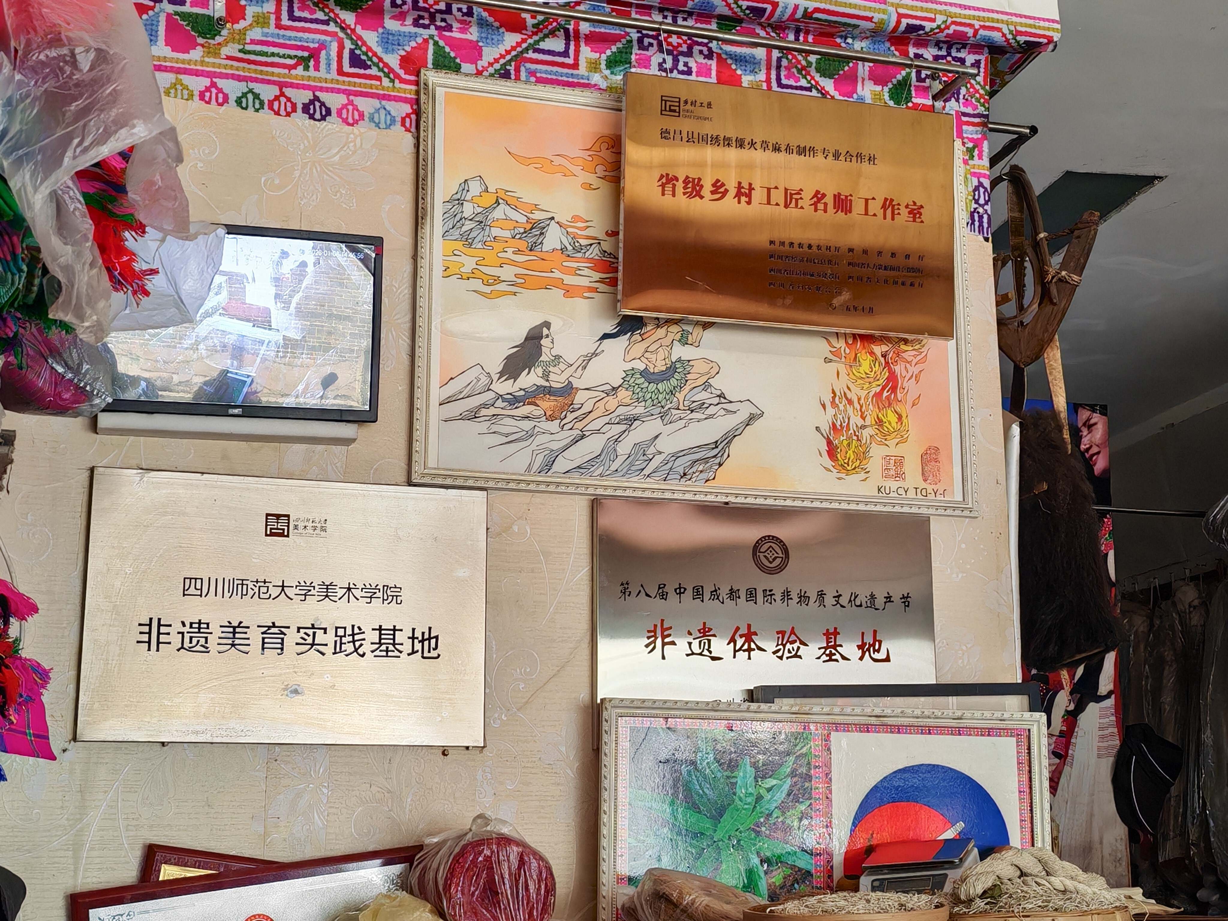 如今,在德昌钟鼓楼旁的合作社门店里,年轻的面孔偶尔也会出现在店铺前,他们好奇地触摸着展柜里纹样各异的火草布,或举起手机记录下火草布的经纬。