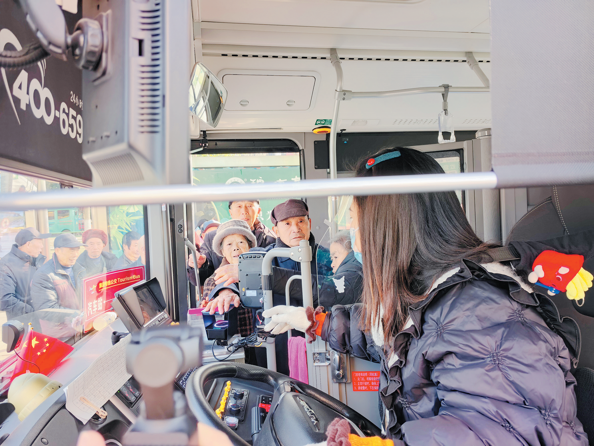 针对部分老年人在使用掌纹系统时遇到的常见问题,宏运公交公司运营部工作人员高小茜提示:“冬季衣服穿得厚,使用时要注意将袖子挽起,掌心对准识别区上方,手掌自然舒展、不要握紧,即可正常识别。”