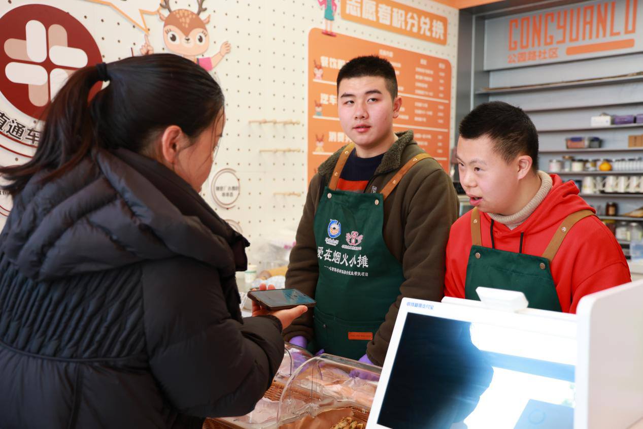 “暖心咖啡馆”专注咖啡制作、客户接待、等服务技能培育;“爱心烘焙坊”聚焦烘焙技艺、前台收银能力训练,产出的健康烘焙品通过线上线下双渠道售卖,积极探索“实训+造血”的可持续运营模式;“烟火小铺”则以商品陈列、日常理货、基础导购等零售业核心技能为培训重点,同时作为基地特色产品的展示与销售终端,形成“前店后坊、自给自足”的微型商业闭环。三大服务板块互补共生,为“心青年”提供了多元化、场景化的职业体验平台。