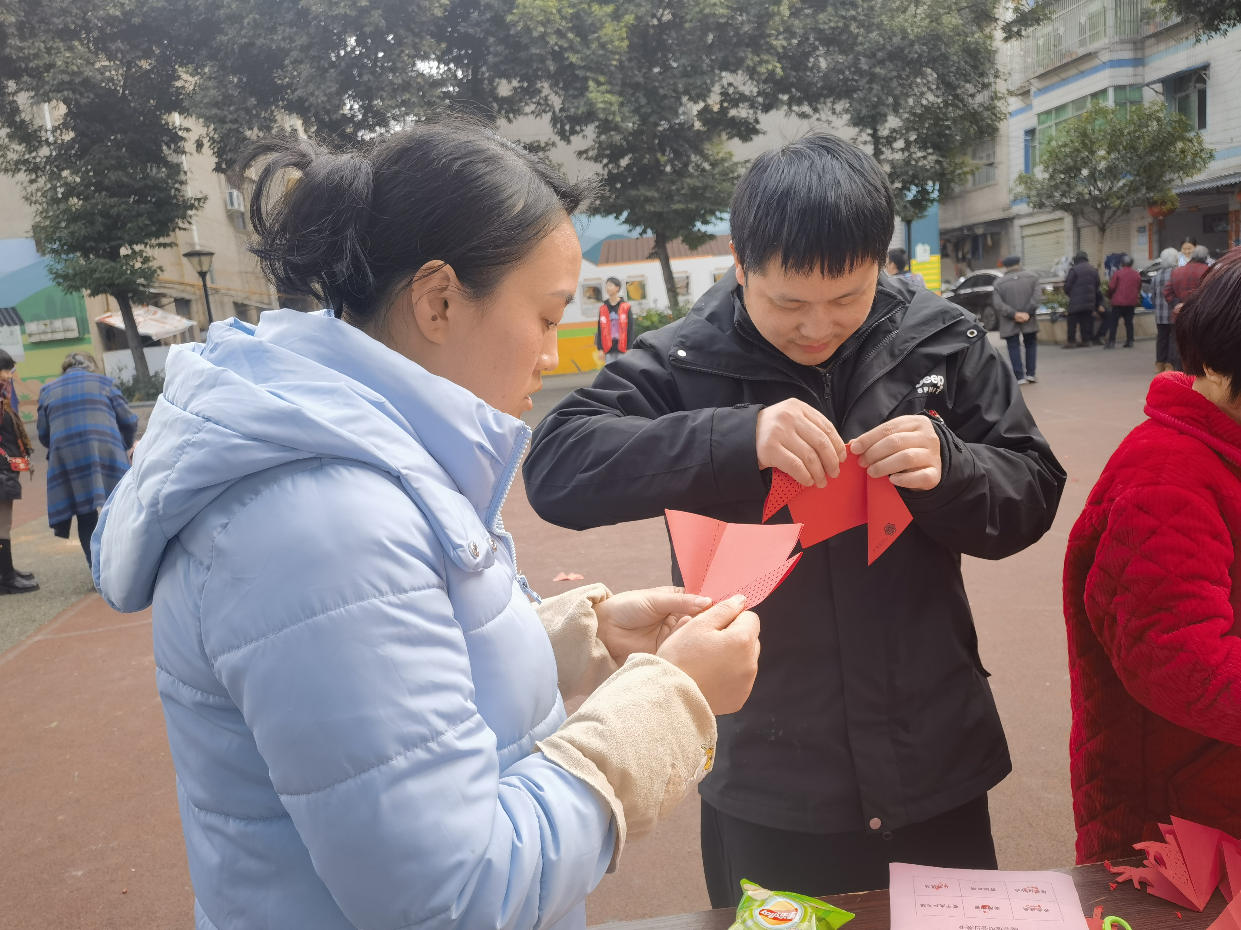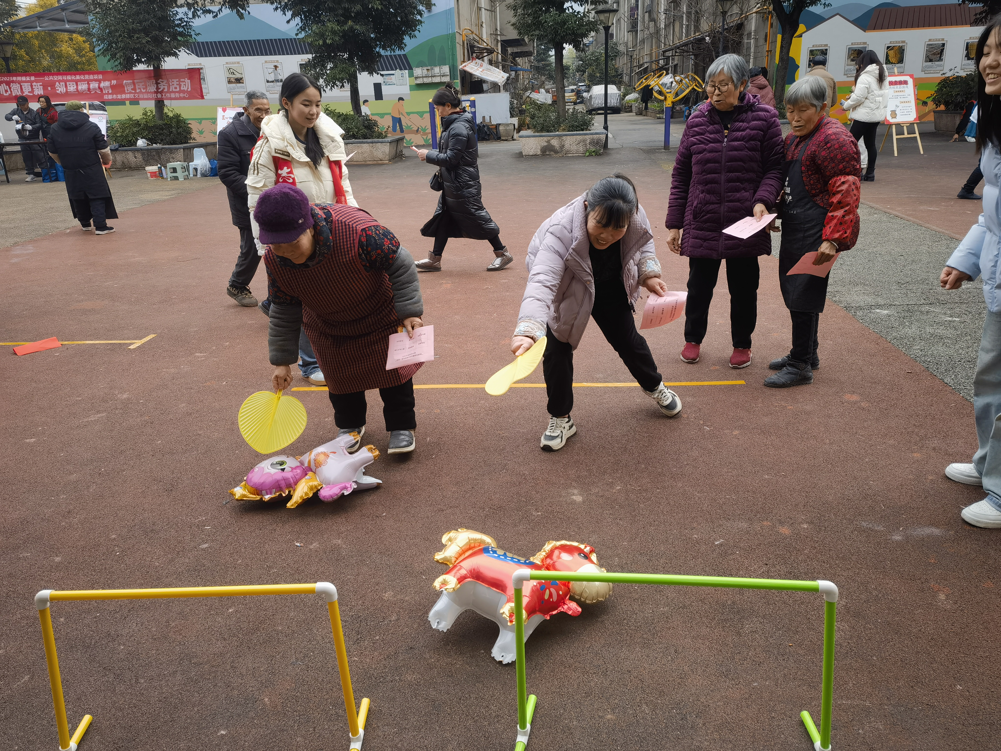活动现场,经过可视化美化升级的社区公共空间焕然一新,整洁的环境、雅致的景观与热闹的活动氛围相得益彰。“投壶雅趣”“套圈纳福”“剪纸送福”等兼具传统韵味与互动乐趣的民俗项目依次排开,每个摊位前都人头攒动、笑语盈盈。老人们在投壶区重温民俗雅致,套圈区欢呼声不断,剪纸区的福字、窗花作品兼具年味与实用性。居民们在协作闯关与全家互动中收获快乐,广场上满是欢声笑语。