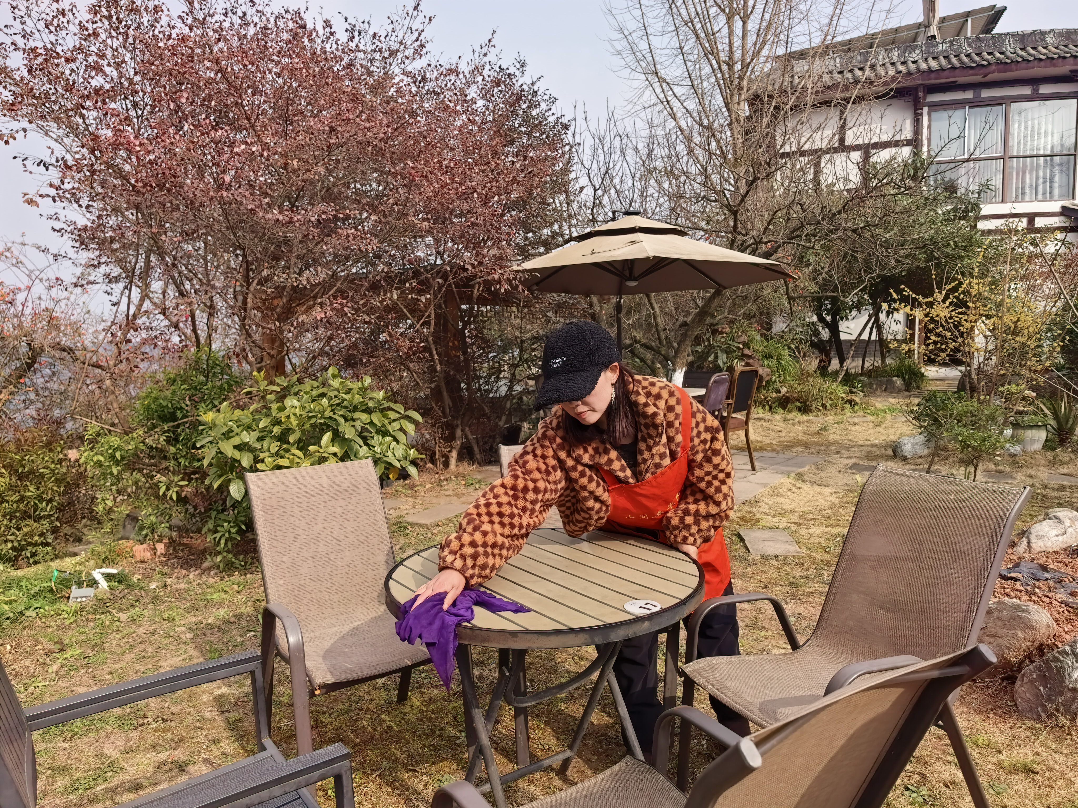 “从2017年发展精品民宿,目前我们村大概有60多家。”张军介绍,民宿经济让村民不仅收租金,还能在家门口打工。桃源村村民苟林正是这一变化的见证者和受益者,她原本在龙泉驿城区工作,每天通勤不便,家里老人也需照料。“村里发展民宿后,我直接回来上班了,既能照顾家里,收入也稳定。”更让她欣喜的是,自家的水蜜桃如今在民宿里就能销售一空,再也不用辛苦运到城里去卖,“收入比以前高了不少,日子也过得踏实多了。”