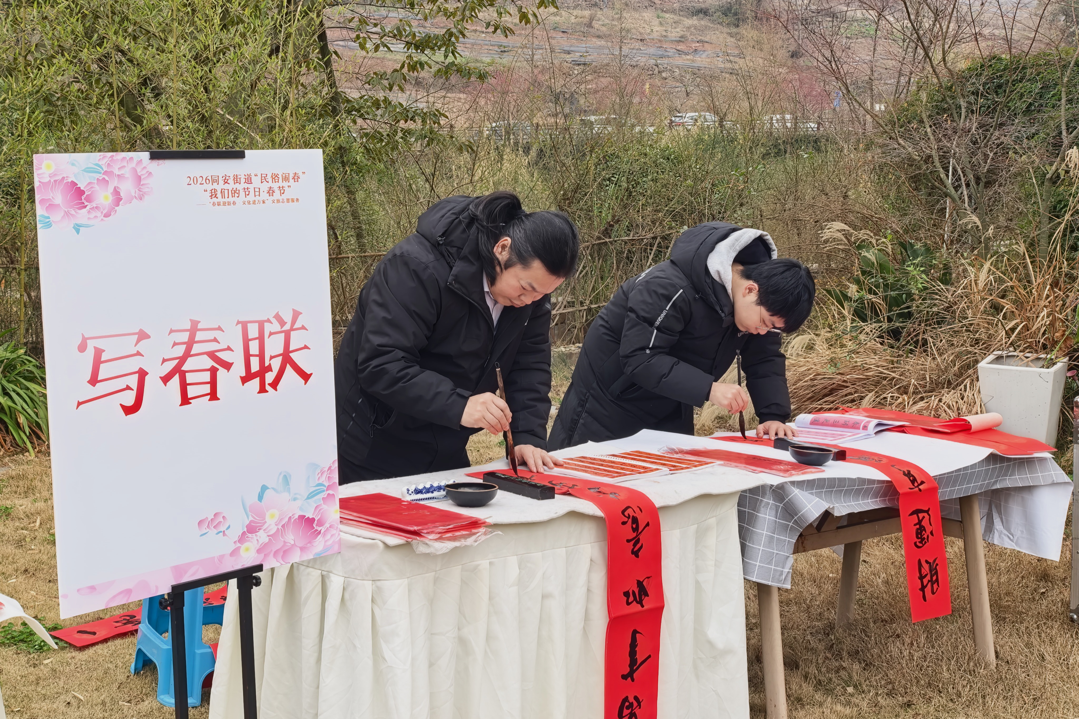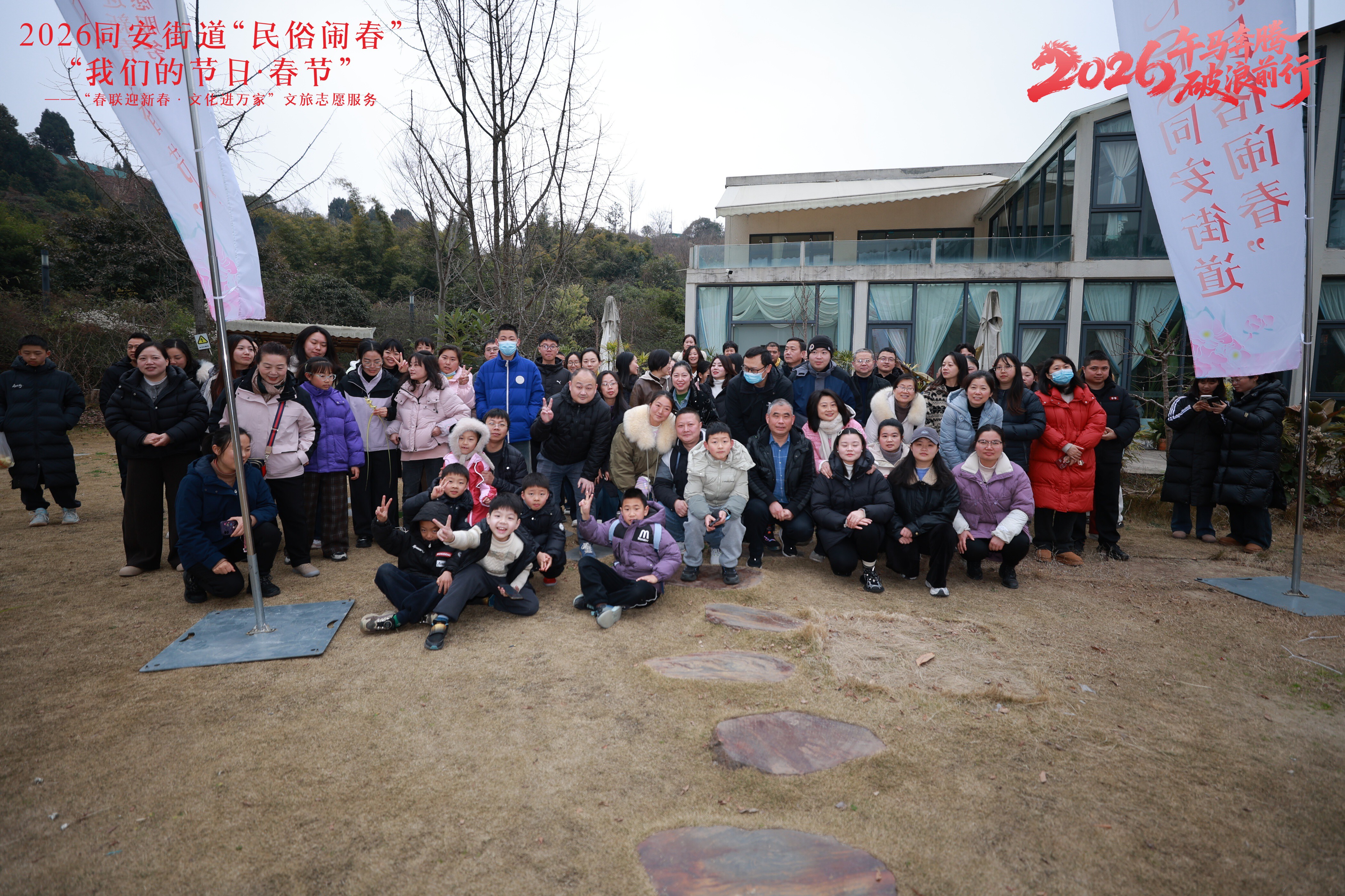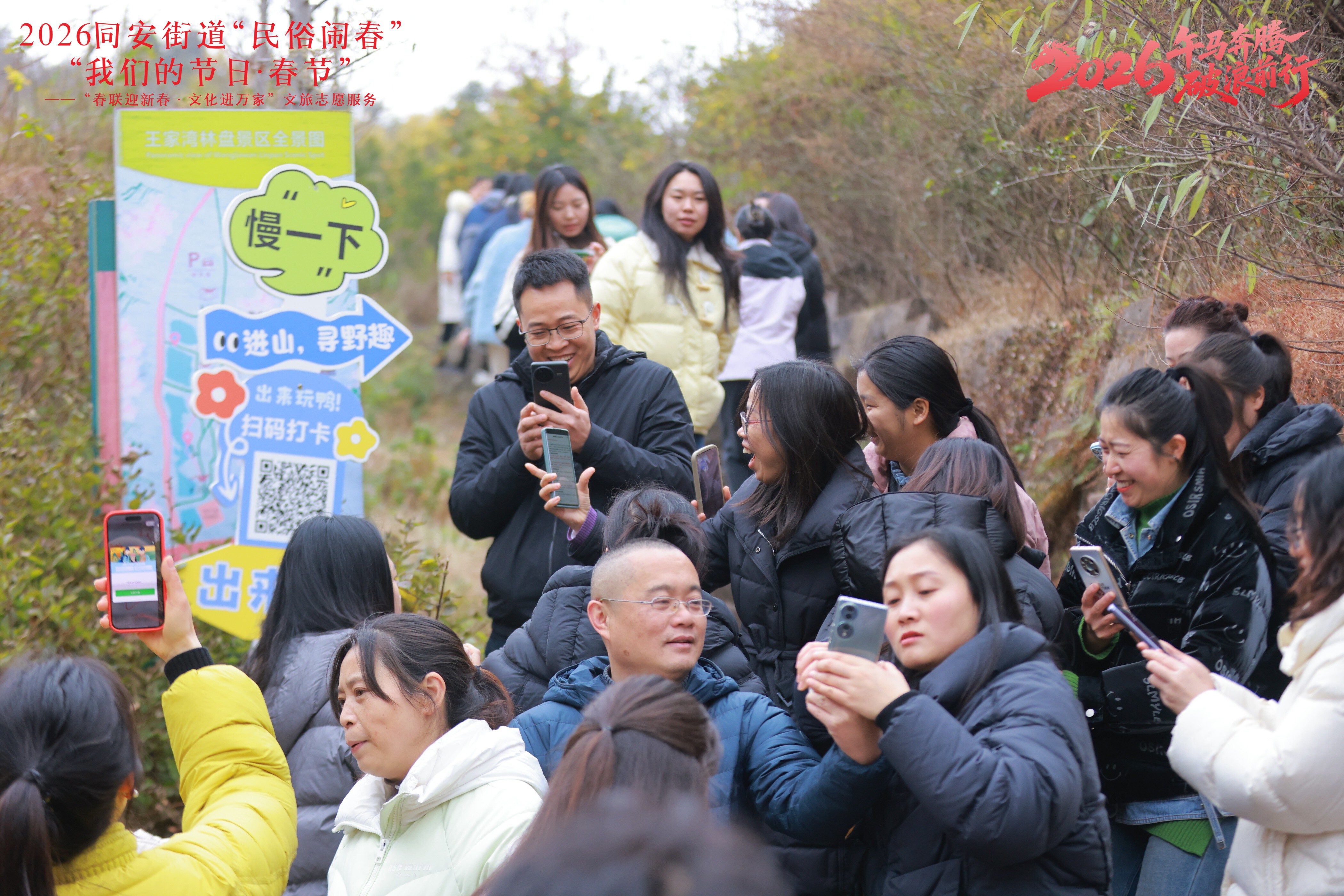 “3、2、1,出发!”1月29日下午,随着主持人一声令下,百余名运动爱好者迎着冬日和煦的微风,踏上王家湾林盘“书山花海”徒步打卡路线。位于新见·书山的这片山野林盘,一时间欢声笑语、人流如织,同安街道2026年“我们的节日·春节”——“春联迎新春·文化进万家”文旅志愿服务暨第二届“民俗闹春”新春游园会,在浓浓年味中拉开帷幕。
