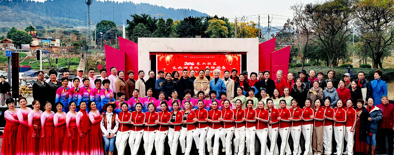 活动在气势恢宏的《打音乐腰鼓》中启幕,铿锵鼓点激昂有力,瞬间点燃现场热烈氛围。东山社区相关负责人登台致辞,向全体居民及各界友人致以诚挚的新春祝福,同时回顾了过往一年社区建设的丰硕成果:集体经济年收入85.76万元,慈善微基金助力困难家庭,文创集市带动灵活就业,日间照料中心等民生设施提档升级,创新“互助养老”模式惠及特殊群体。