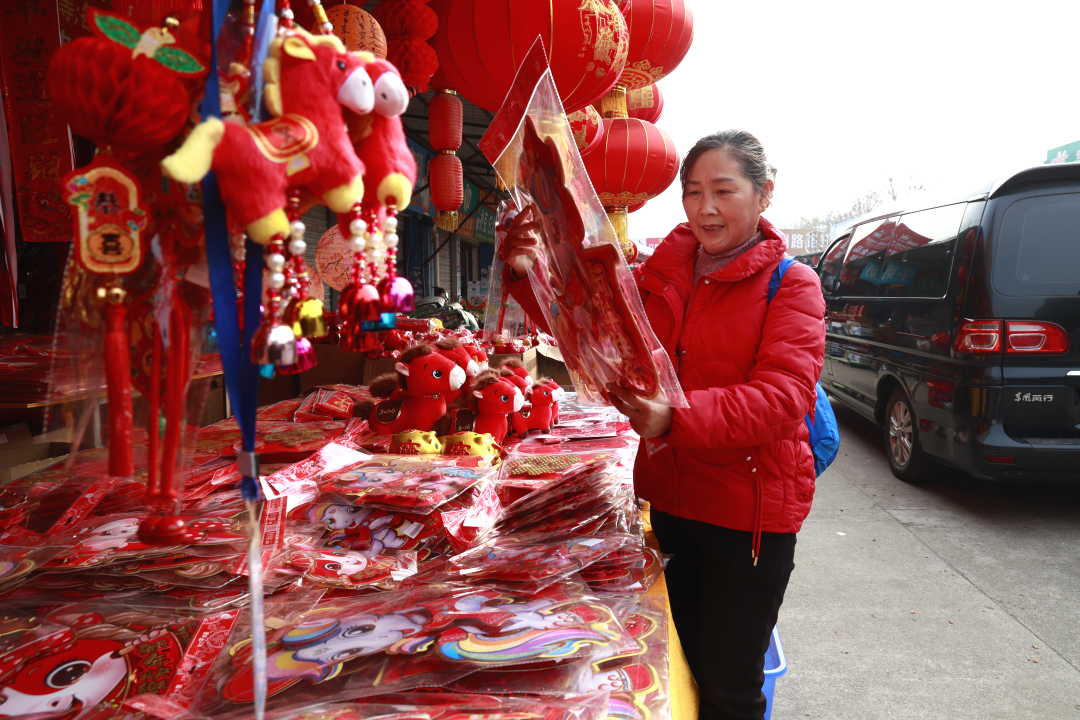 今年的主角,当属融入马年元素的各类年货:印着骏马图案的春联、绣着“龙马精神”的卡通毡画、绘着奔马的灯笼……市场内,处处洋溢着“马到成功”“马上发财”的美好寓意。