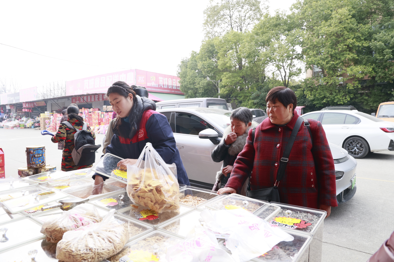 在熙熙攘攘的人群中,张婆婆和她的“小伙伴们”也在马不停蹄挑选年货。家住青白江的她,今年又约着朋友专门坐班车来西南食品城买年货。“今天就是来买点瓜子、糖果和开心果,我们就当旅游一样,来这里逛耍一圈。”张婆婆笑着告诉记者,因为西南食品城性价比高、品种又全,一站式就能买齐家里需要的,已经连续3年来这儿买年货了。