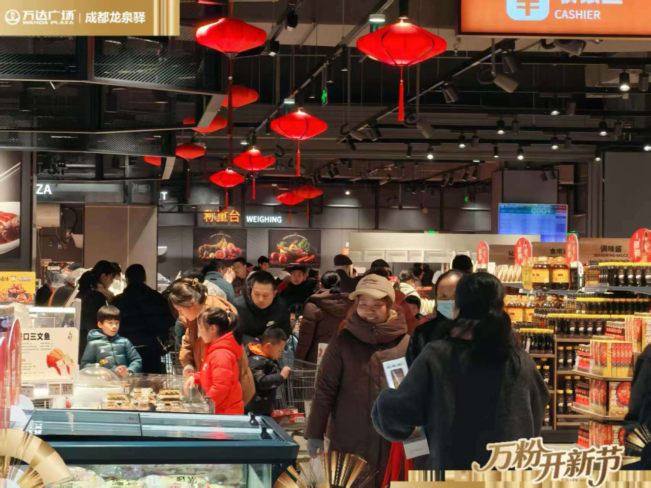 成都西南·西博食品城的热闹,正是龙泉驿区新春消费市场火热的缩影。连日来,全区各大商超、农贸市场同步开启“年货模式”,特色农产品市集、新春展销会轮番登场,从生鲜果蔬到文创礼品,从传统年俗到新潮玩法,全方位满足市民的消费需求。
