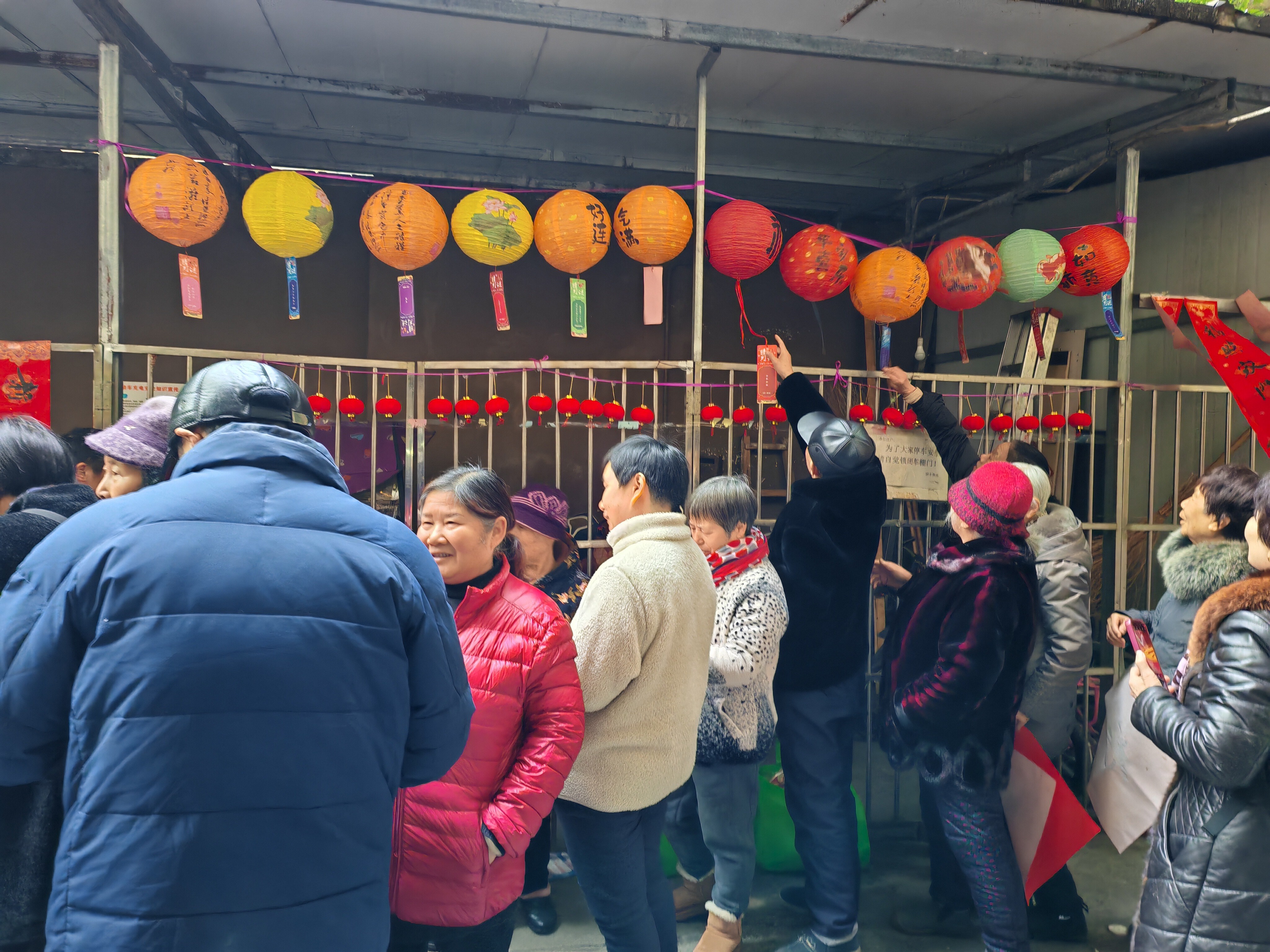 活动以“安全护航+文化添彩”为核心,设置多项特色环节,兼顾实用性与趣味性,整个现场年味浓郁,备受居民青睐。在消防安全知识学习现场,社工结合冬季火灾高发特点,用通俗的语言讲解居家用电用气隐患排查、火灾逃生“弯腰低姿捂口鼻”等关键技能,通过实物演示拆解灭火器“提、拔、握、压”的规范操作,让居民快速掌握应急处置方法。在写春联猜灯谜区,书法爱好者现场挥毫泼墨,将饱含美好祝愿的春联与大红“福”字免费赠予居民,另外一边贴着灯谜的红灯笼下,居民们或是独自凝神思考,或是三两结伴热烈探讨,在思考的同时传递新春祝福,浓浓的邻里温情在现场不断传递。