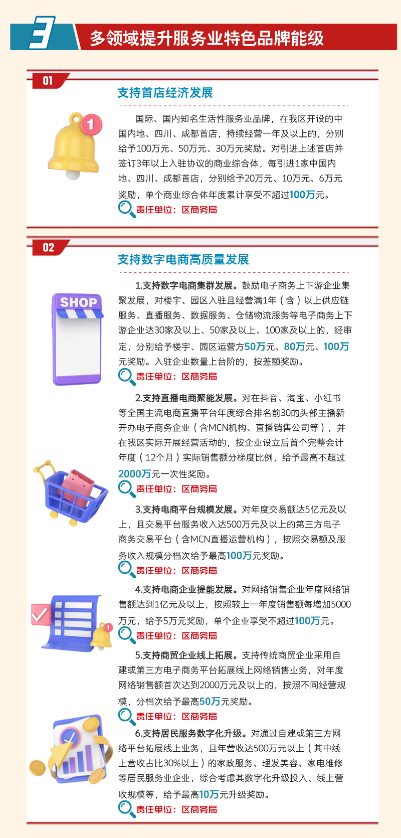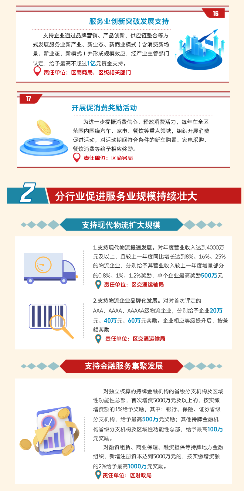 围绕创新发展、消费场景营造、优质品牌塑造、多元消费活动举办等方向,支持引导服务业创新升级,全面赋能产业提质增效。