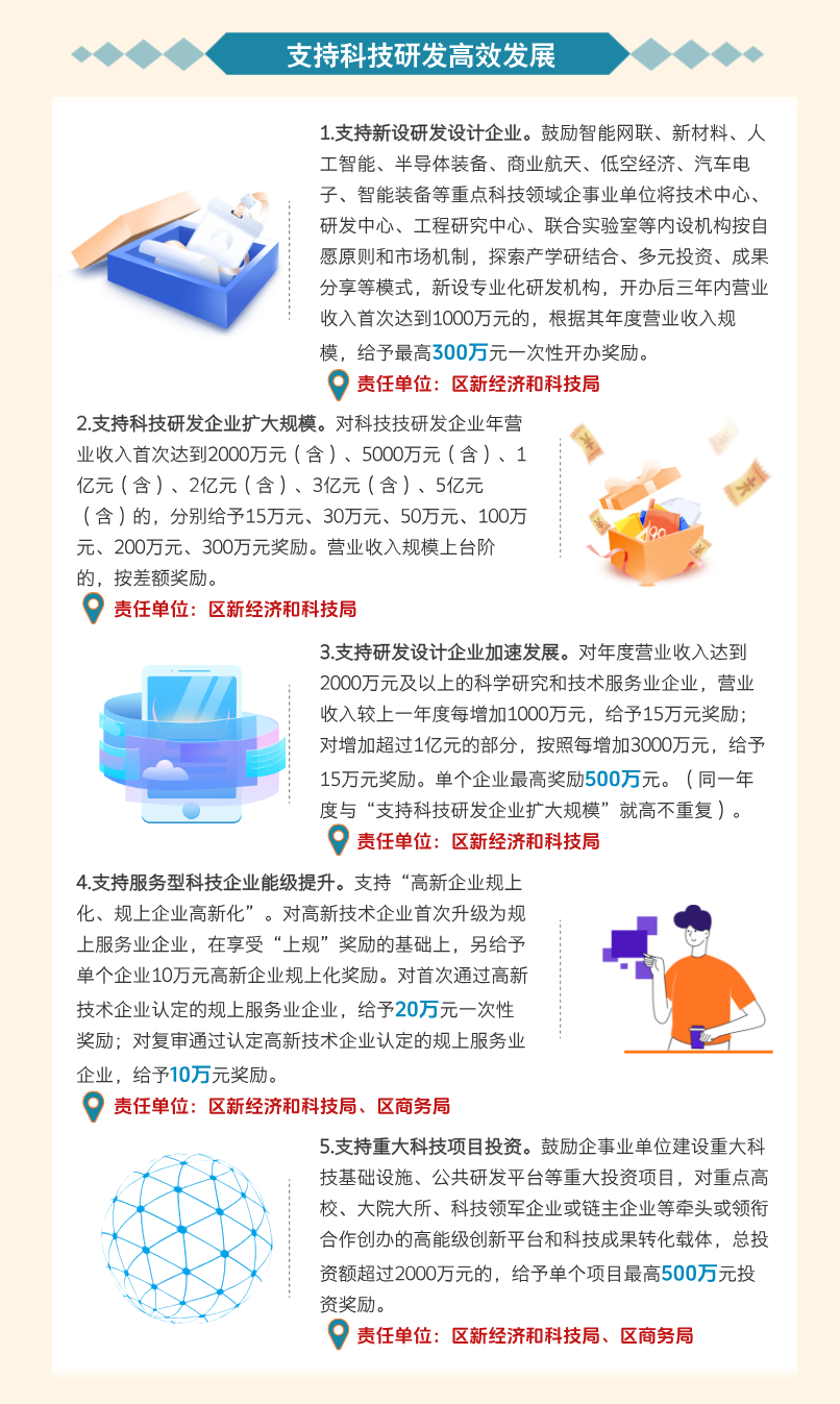 从项目投资、能级提升、市场拓展、要素保障等多方面提供全流程支持,对符合条件的重点项目和企业给予支持。