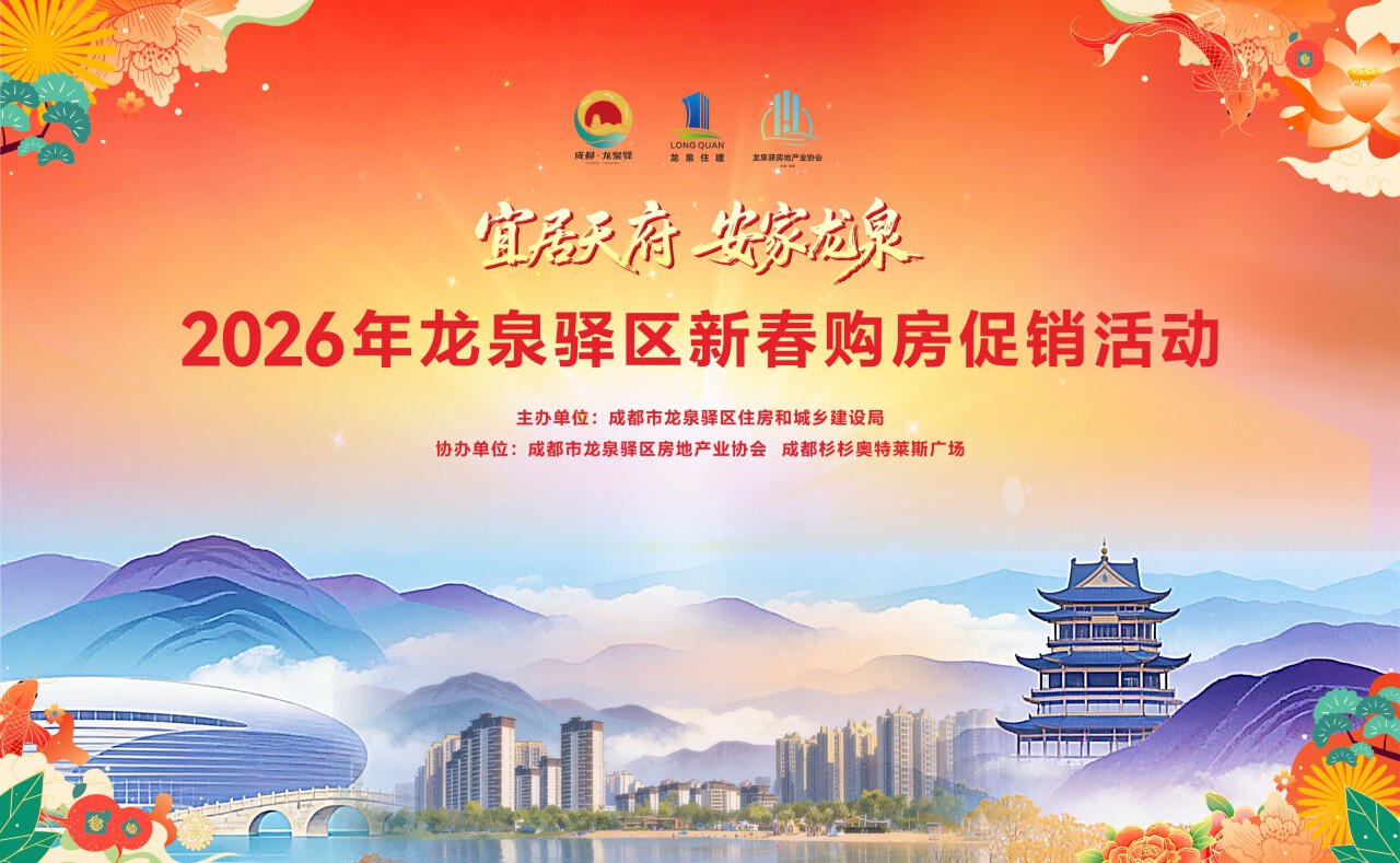 新年安新家,住在龙泉驿。为满足广大市民住房需求,由龙泉驿区住房和城乡建设局主办,区房地产业协会等单位协办的2026“宜居天府·安家龙泉”新春购房促销活动将于2月7日至2月14日在成都杉杉奥特莱斯广场举行。