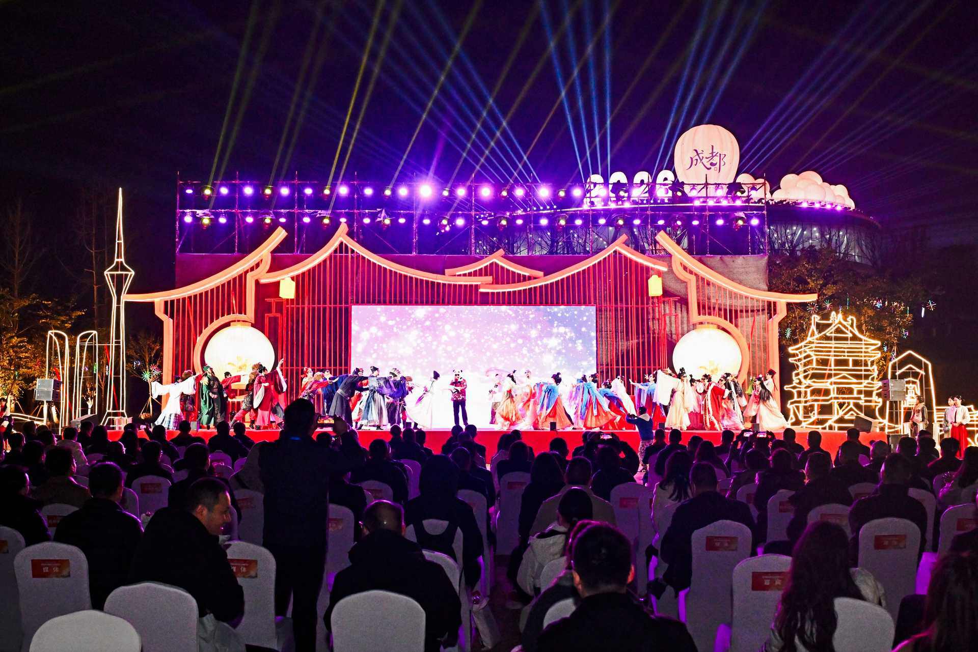 置身灯会,市民游客还可以看到《十二月市生肖闹》灯组重现唐宋商业文明的繁盛景象,《成都锦绣》灯组勾勒出城市地标的独特风采,《千秋名句满庭院》《此心安处是吾乡》等灯组用光影书写诗词……途经“古驿茶店”时,还能欣赏大型文旅节目《太白醉月》。