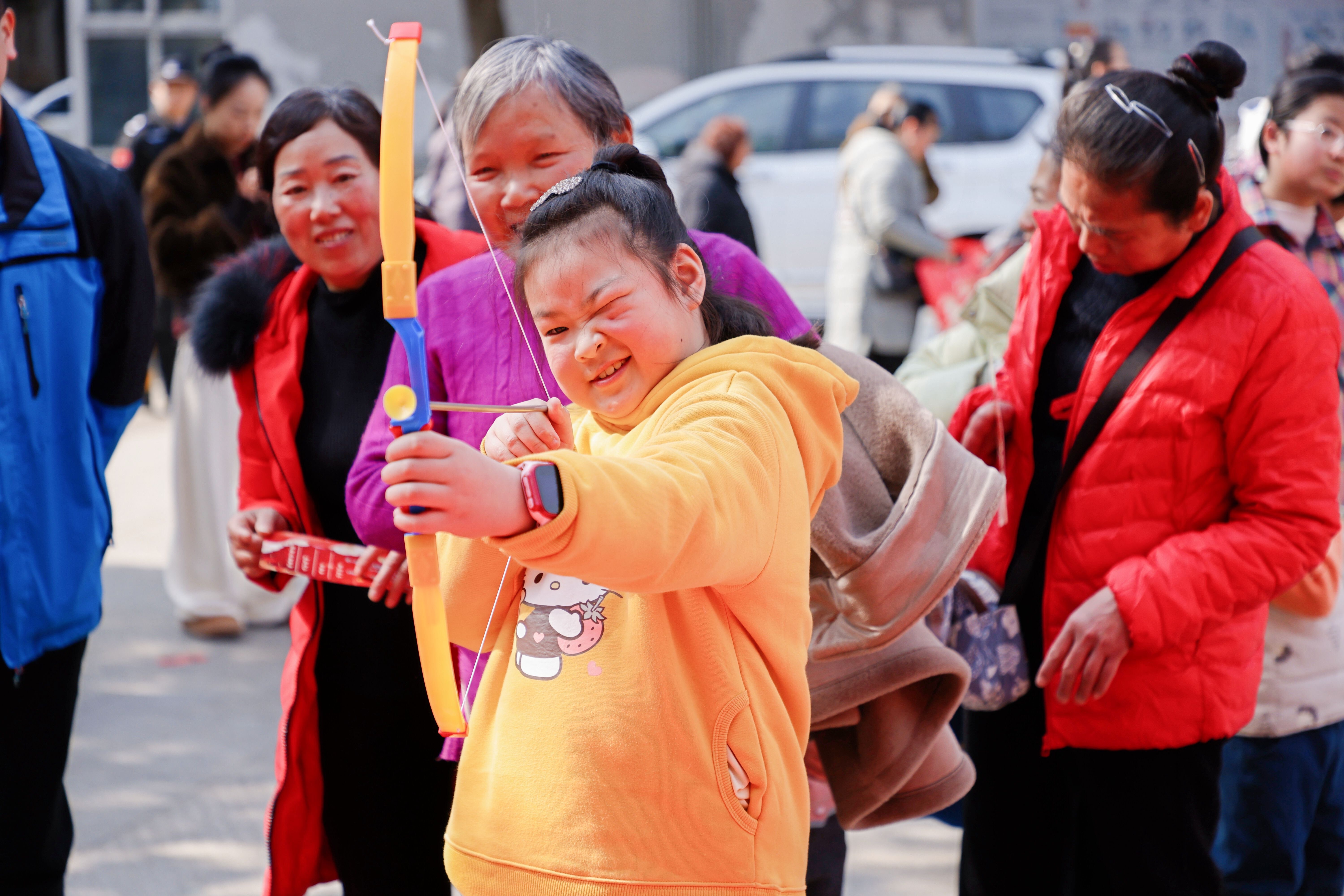 金马贺岁丢丢乐和箭在弦上马到成功两个环节同样精彩纷呈。印有金马图案的软质沙包轻盈飞出,精准命中靶盘;安全吸盘弓箭对准马年主题靶心,一击即中的成就感溢于言表。志愿者们全程坚守岗位,耐心讲解规则、有序发放道具、细致兑换印章,用热情服务为活动保驾护航。