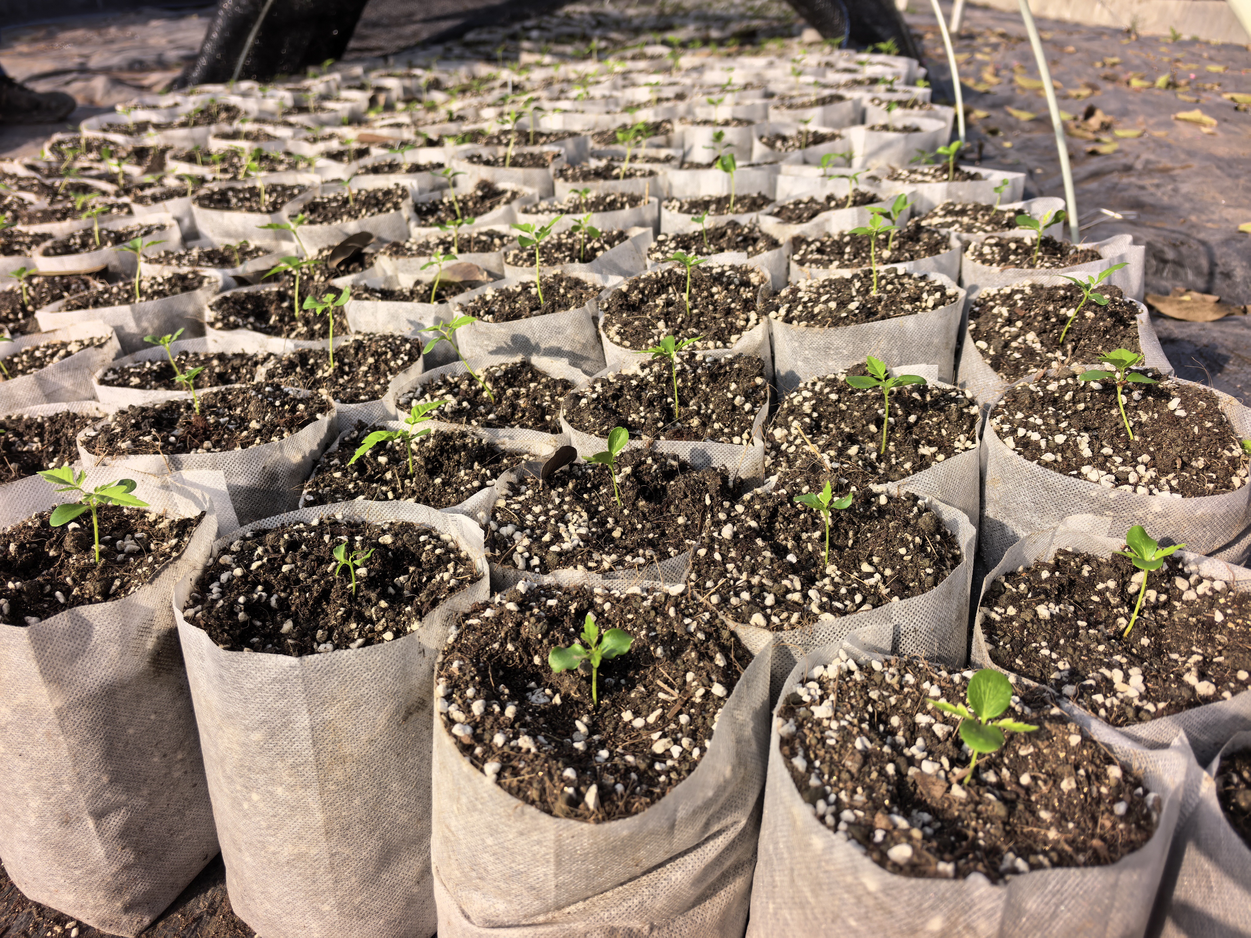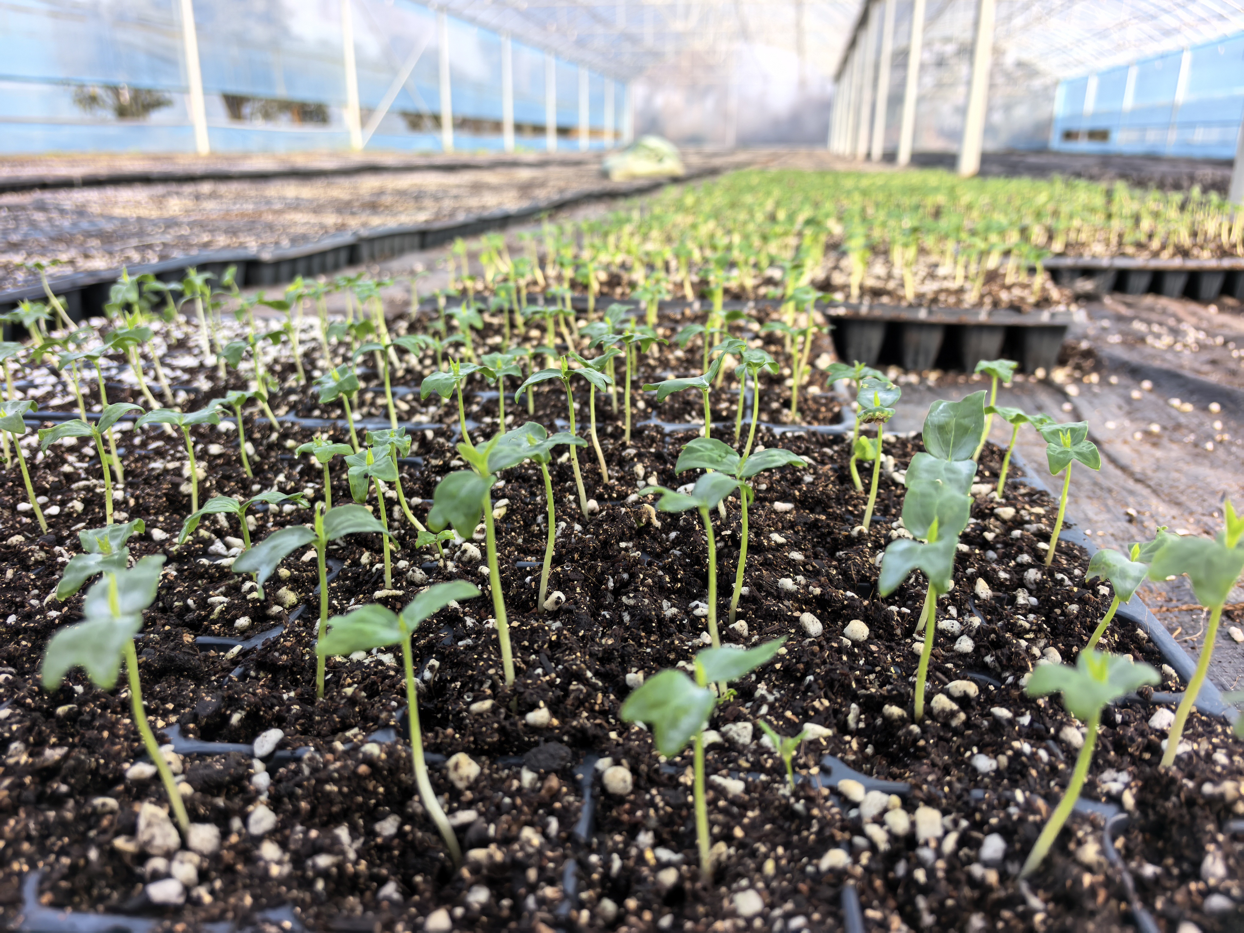 冬季育苗何以顺利出芽、茁壮生长?除依托大棚控温保温乃至辅以炭火增温外,基地所采用的“轻基质播种+蛭石覆盖”技术尤为关键。随手抓起一把苗间基质,触感明显比普通泥土更加疏松透气,其中均匀掺杂着许多白色颗粒。