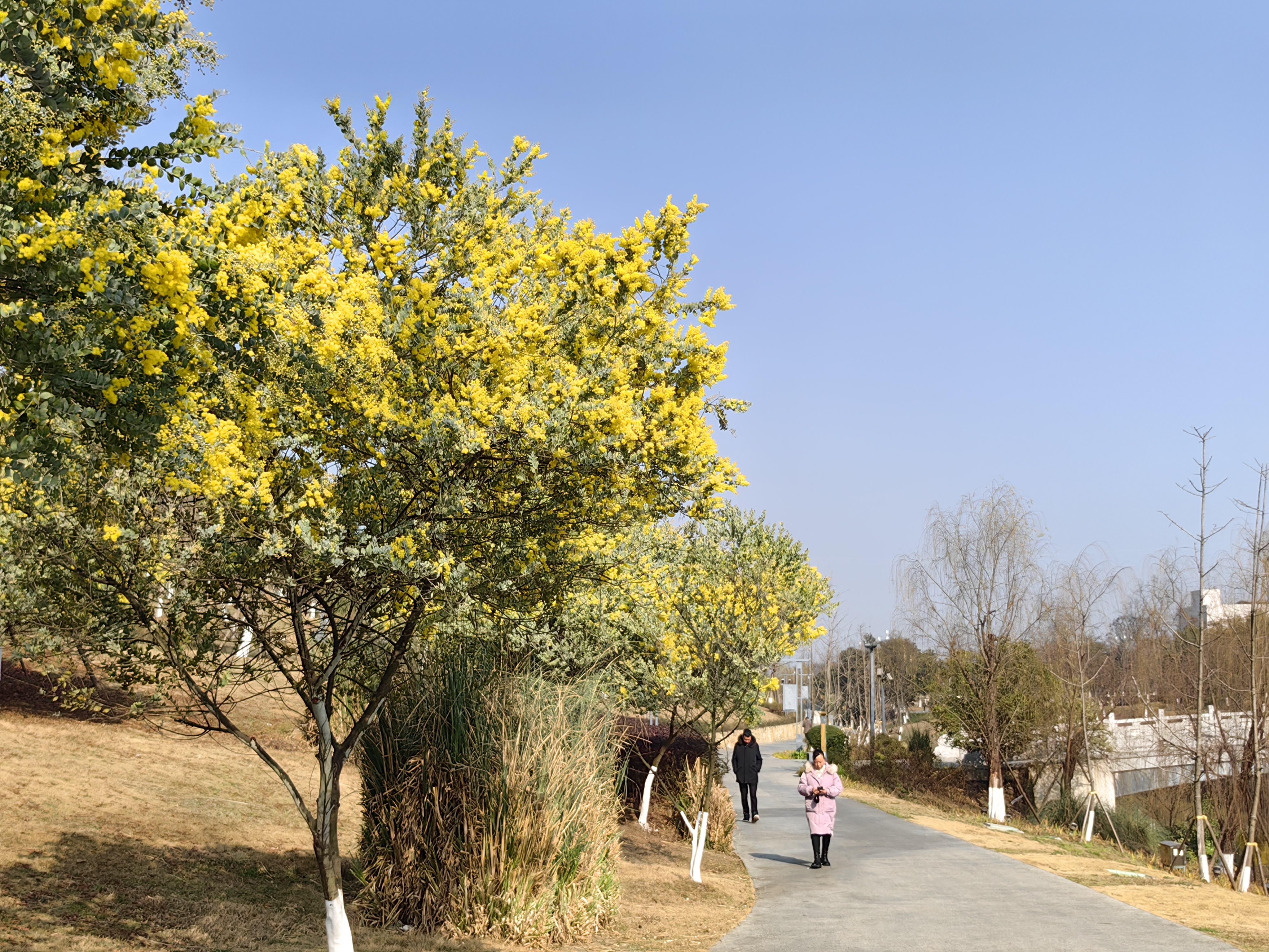 据区公园城市局相关负责人介绍,驿马河公园共栽植银叶金合欢40余株,主要零星分布在驿马河公园二期及驿马河河道两岸区域。银叶金合欢的花期通常从2月持续到3月,今年由于气温适宜,花开得格外繁茂,目前,公园内的银叶金合欢已陆续进入盛花期。阳光晴好,市民朋友可以趁着假期来此踏春赏花。