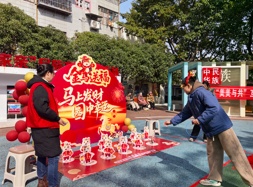 为传承中华优秀传统民俗文化,营造喜庆祥和的新春氛围,2月10日下午,十陵街道宁江社区与弘德社会工作服务中心携手举办“骏马迎新春·同心一家亲”2026年新春游园会。活动吸引了辖区300余名居民齐聚一堂,品味年俗韵味,勾勒出社区和谐共融的美好图景。