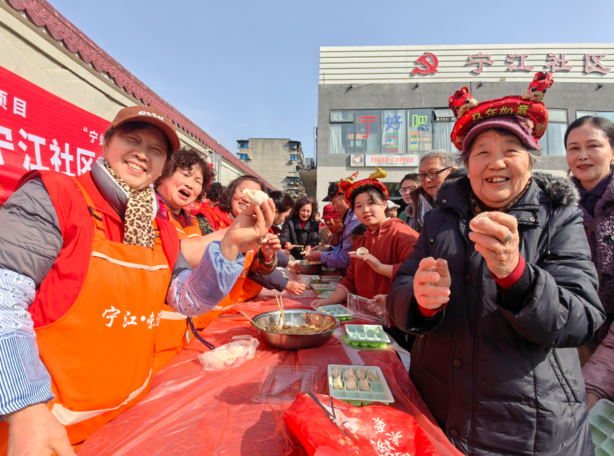 在传统美食品尝区,酸甜可口的冰糖葫芦酸甜交融,社区居民自发带来酸菜汤、酸菜饺子、猪皮冻等特色美食,香气满园,酸鲜醇厚的滋味勾勒出家乡独有的风味。居民们还可以在巧手包福饺区自己制作水饺,每一个饱满可爱的饺子成型,都蕴含着团圆的美好寓意。