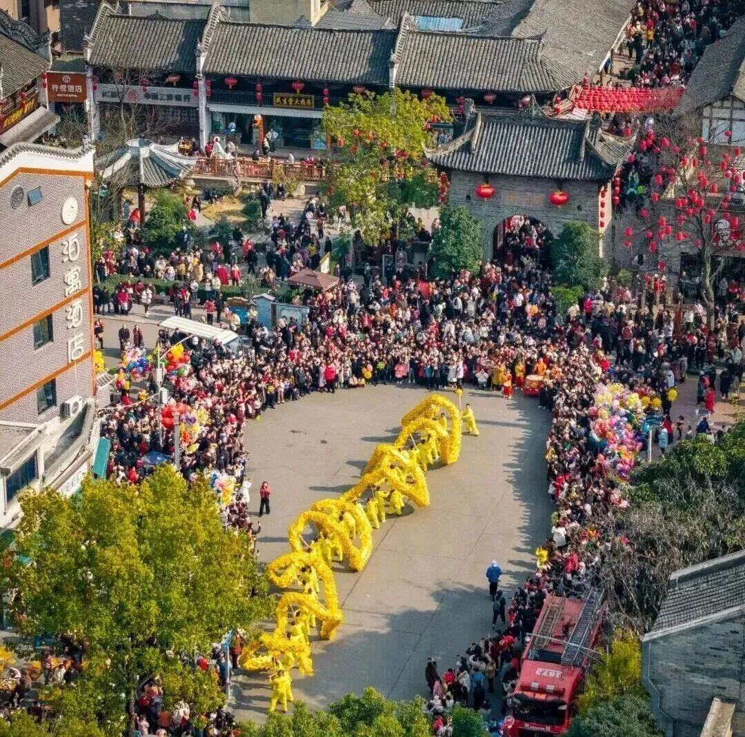 千年洛带古镇客家年味拉满,“洛带记民俗荟”活动精彩纷呈。省级非遗客家百米长龙“刘家龙”巡游、醒狮贺岁、财神送福沿街上演,锣鼓喧天、喜气洋洋;五凤楼光影秀每晚准点上演,以古建为幕再现客家文脉;簪花音乐季、机甲夜游、实景演艺轮番登场,非遗拓印、特色小吃、潮玩市集遍布街巷。2月18日,洛带古镇单日接待游客达11.4万人次,昼夜联动的文旅场景让客家民俗与国潮新风完美融合,尽显千年古镇的新春活力。