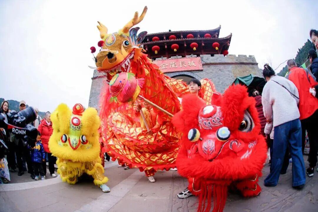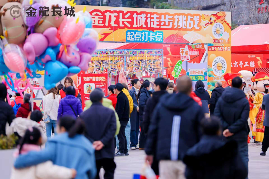 山泉镇依托龙泉山生态资源,打造山野新春体验。钟家山步道、王家湾林盘年味浓郁,徒步画马路线在此串联起观景打卡、休闲游憩等多元场景,市民游客登高望远、赏景祈福,在自然山野中感受新春惬意。金龙长城举办“龙马精神 福聚长城”新春庙会,非遗表演、财神巡游、特色市集齐聚,登高祈福与民俗体验相结合,山间农家炊烟袅袅,柴火美食香气四溢,家庭团聚、朋友小聚,尽显乡村年味的质朴与温暖。