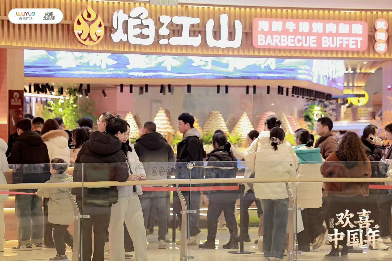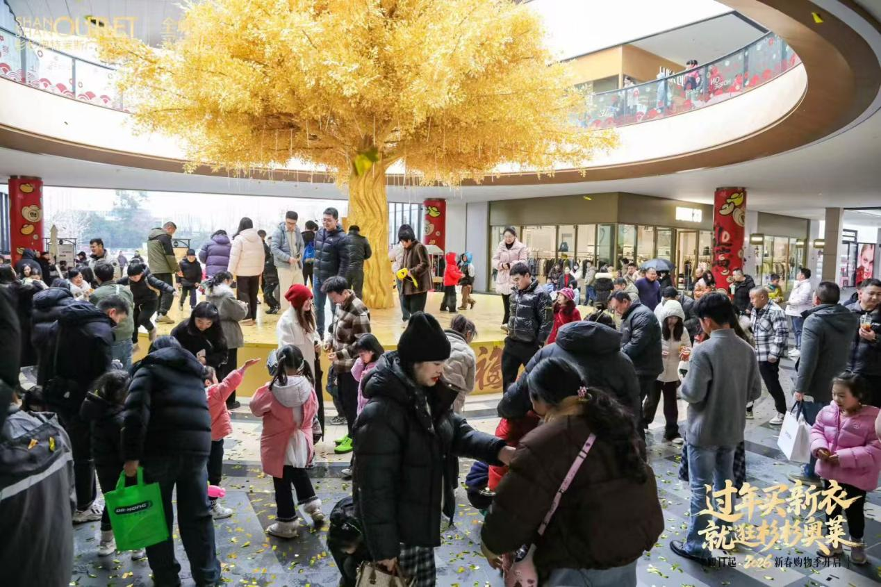 把握住消费者对于“红红火火过大年”的需求,龙泉驿各大商业综合体,洋溢着喜庆热闹的浓浓年味。龙湖东安天街的鱼灯幻境、杉杉奥特莱斯的鎏金福气、万达广场的民俗盛宴……市民游客在沉浸式体验中感受传统年味与新潮风尚交融的独特魅力,在“票根”经济及满减、返券、积分兑换等优惠加持下,商圈消费热潮持续升温。