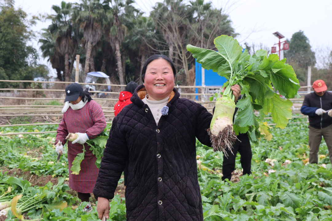 1月22日清晨,薄雾还未散尽,段勇清已经在自家的菜地里忙活开了。她弯着腰,双手握住翠绿的菜叶,用力一拔,一个沾着新鲜泥土、敦实饱满的大头菜便破土而出。这样的动作,他和家人已经重复了二三十年。