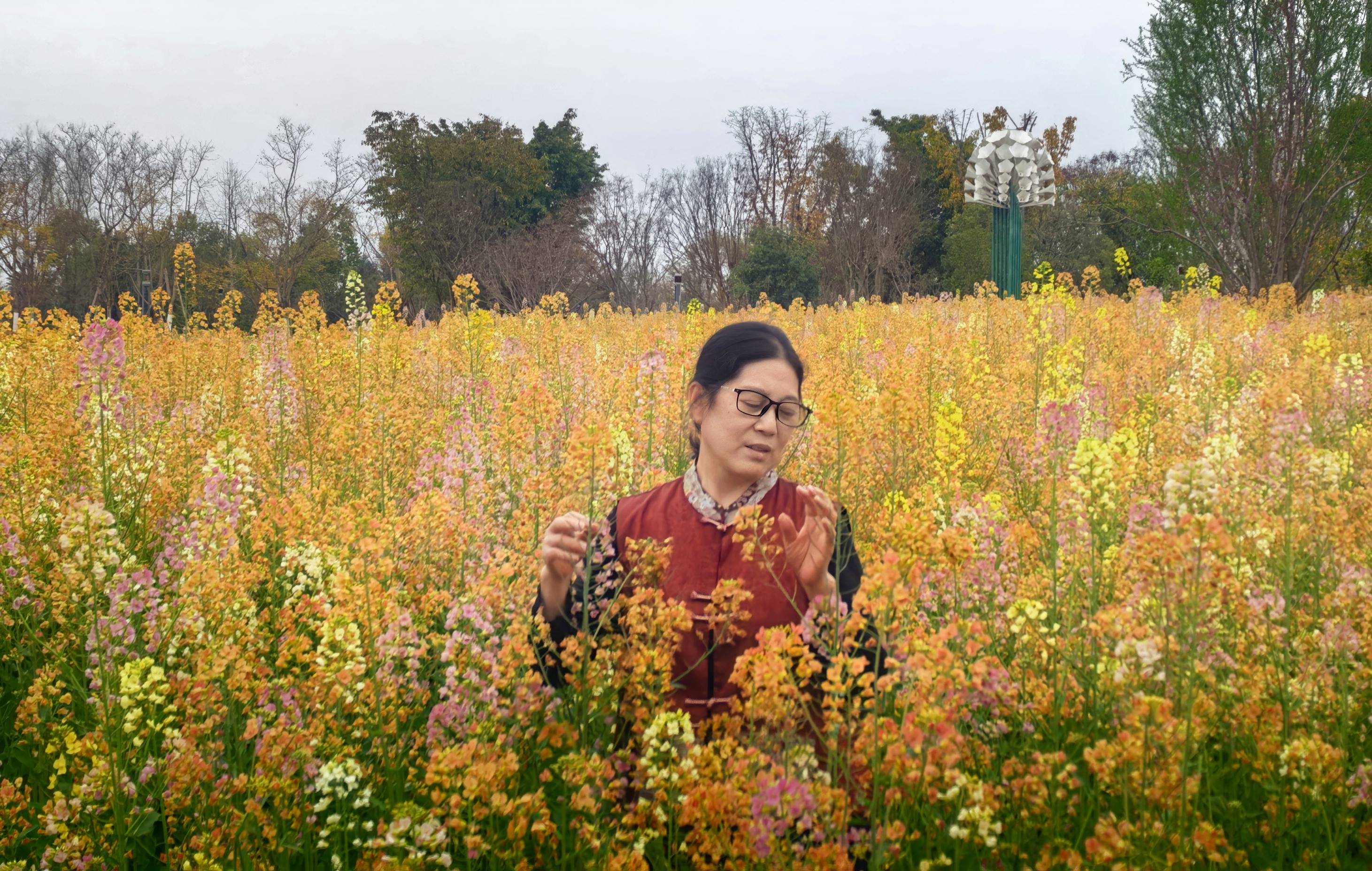 “这片彩色油菜花是去年10月份撒播的,面积大概有1200平方米,现在正处于盛花期,大概持续到3月底。”东安湖公园绿化负责人张上英表示,公园将加强巡逻和引导,同时也希望广大游客文明游园,让文明成为春日美景中最动人的风景线。