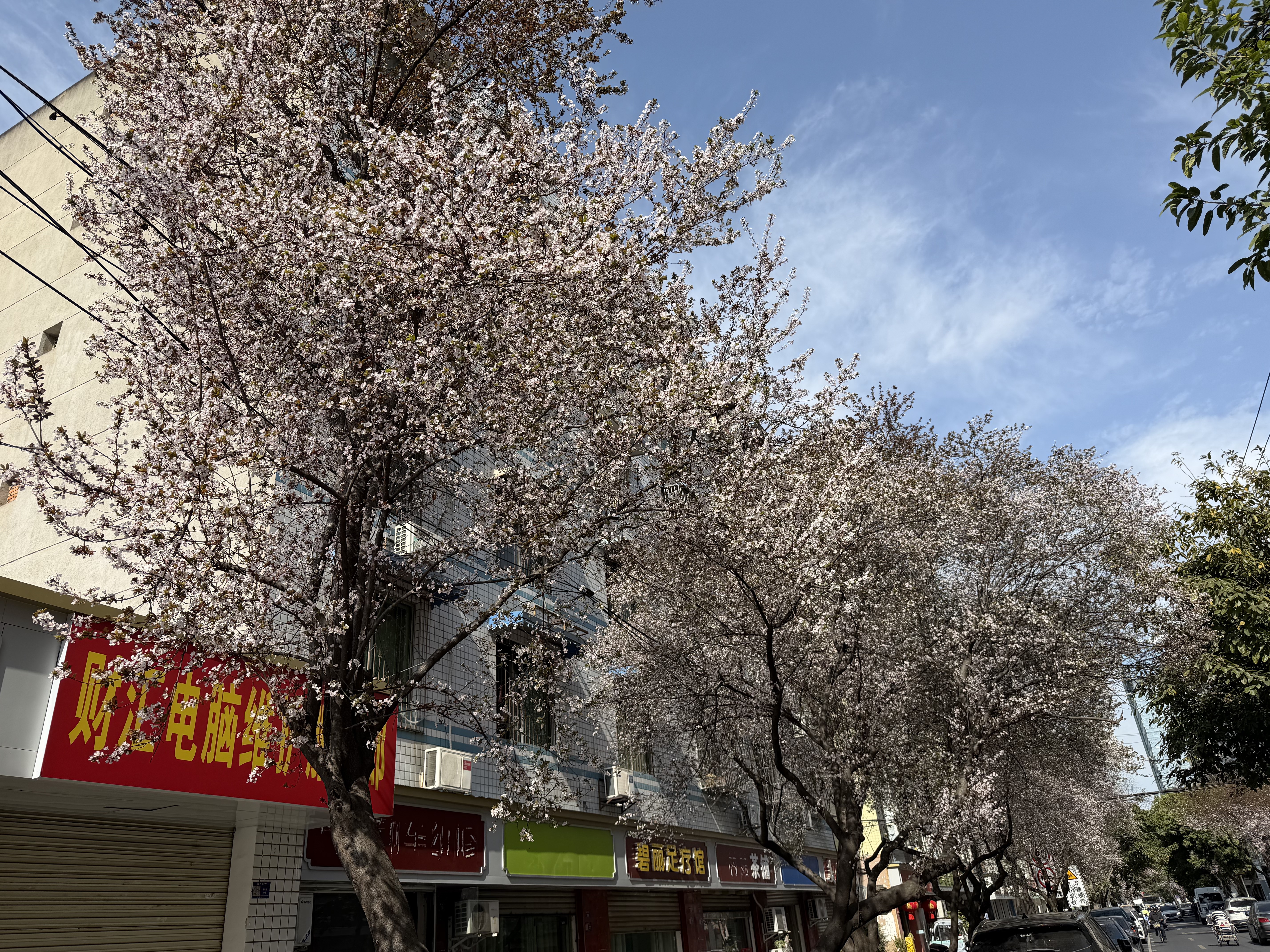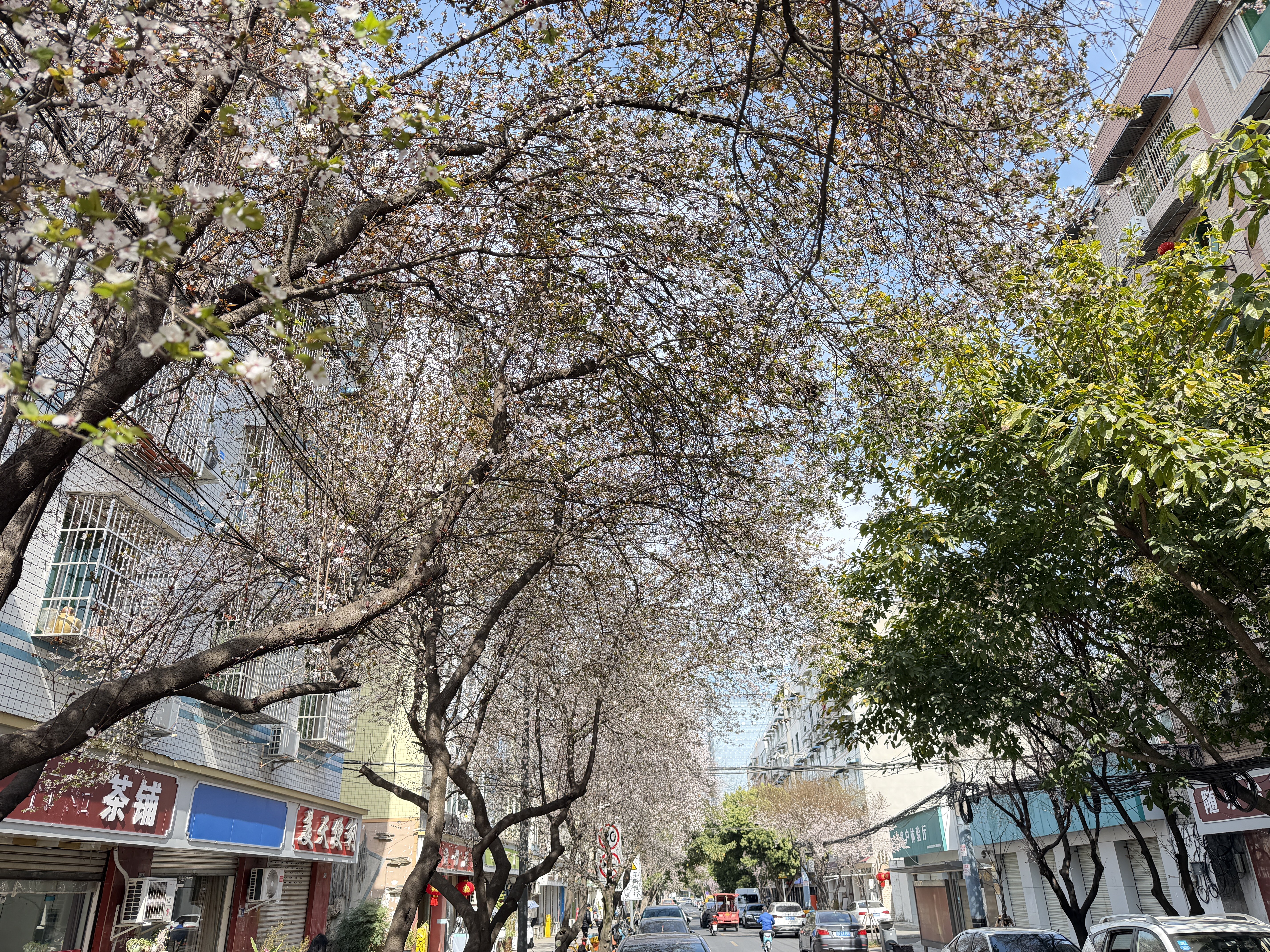 漫步青年路,一排排紫叶李沿道舒展枝丫,细碎小巧的花朵缀满枝头,白中透粉,在阳光下轻盈透亮。微风轻拂,花瓣簌簌飘落,与枝头初绽的紫红色嫩叶相映成趣,行走其间,仿佛闯入春日限定的梦幻花廊,随手一拍都是氛围感大片,无论是漫步休闲、亲子出游,还是摄影创作,都能收获满满治愈感。
