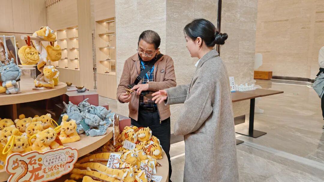 走出展厅,记者们被博物馆文创空间深深吸引。江口沉银博物馆文创以“让文物活起来”为核心理念,以遗址出水核心文物为原型,将沉银宝藏的纹饰、造型、符号等元素融入现代设计,截至目前共开发出365款兼具文化内涵与实用价值的创意产品。