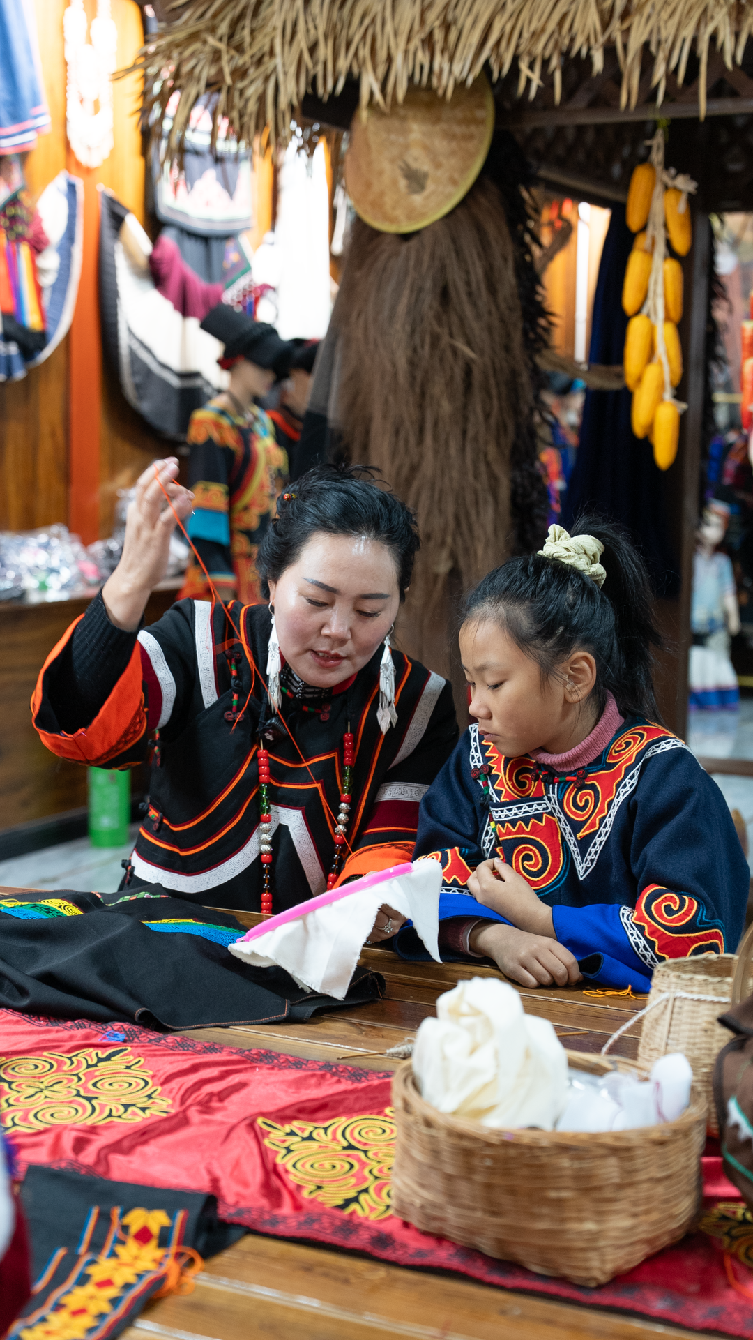 不过,此时拿起绣花针的孩子已经和她们幼时不同了。彼时她们学刺绣是为了以后能更好操持家庭,但如今这些孩子们的学习,只是为了让他们知道,自己的民族拥有的历史和技艺,“不用精通,了解本身就是传承。”