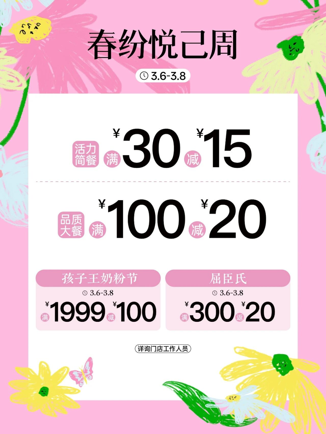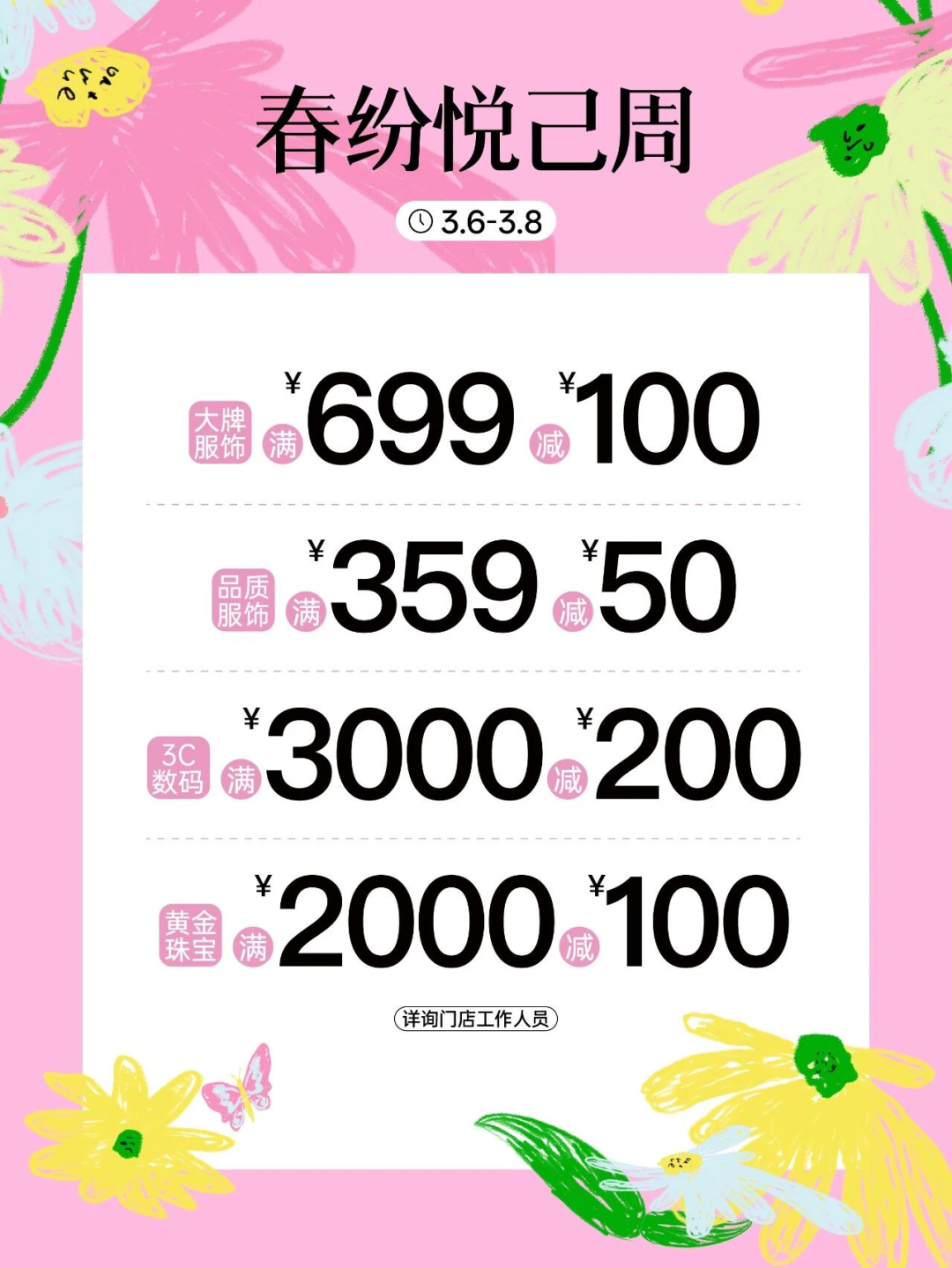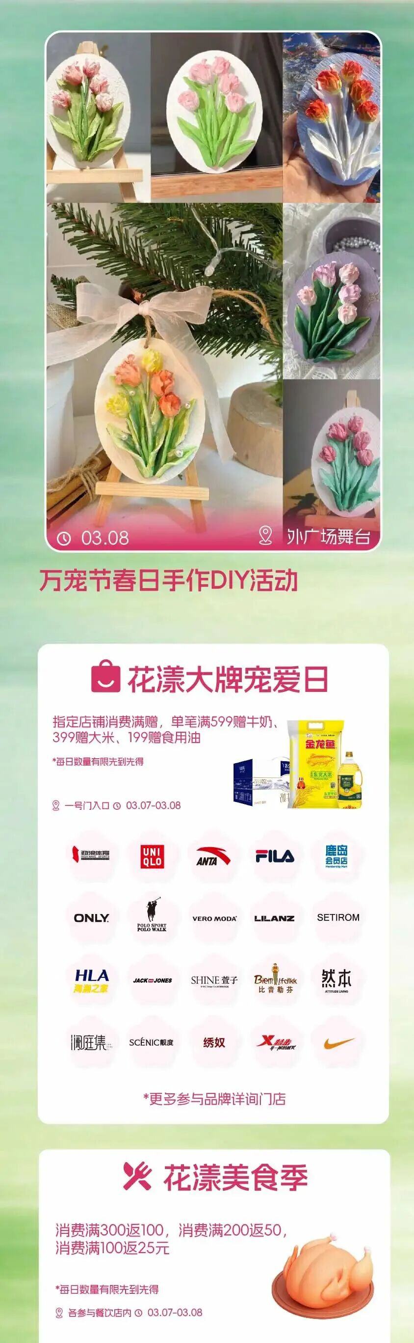 这里有超值优惠、暖心好礼、精致体验,愿每一位女性都能放下忙碌、宠爱自己,尽情逛商超、选好物、享生活。诚邀广大市民朋友,相约龙泉驿、共赴美好,在春日里悦享消费乐趣,遇见更好的自己!