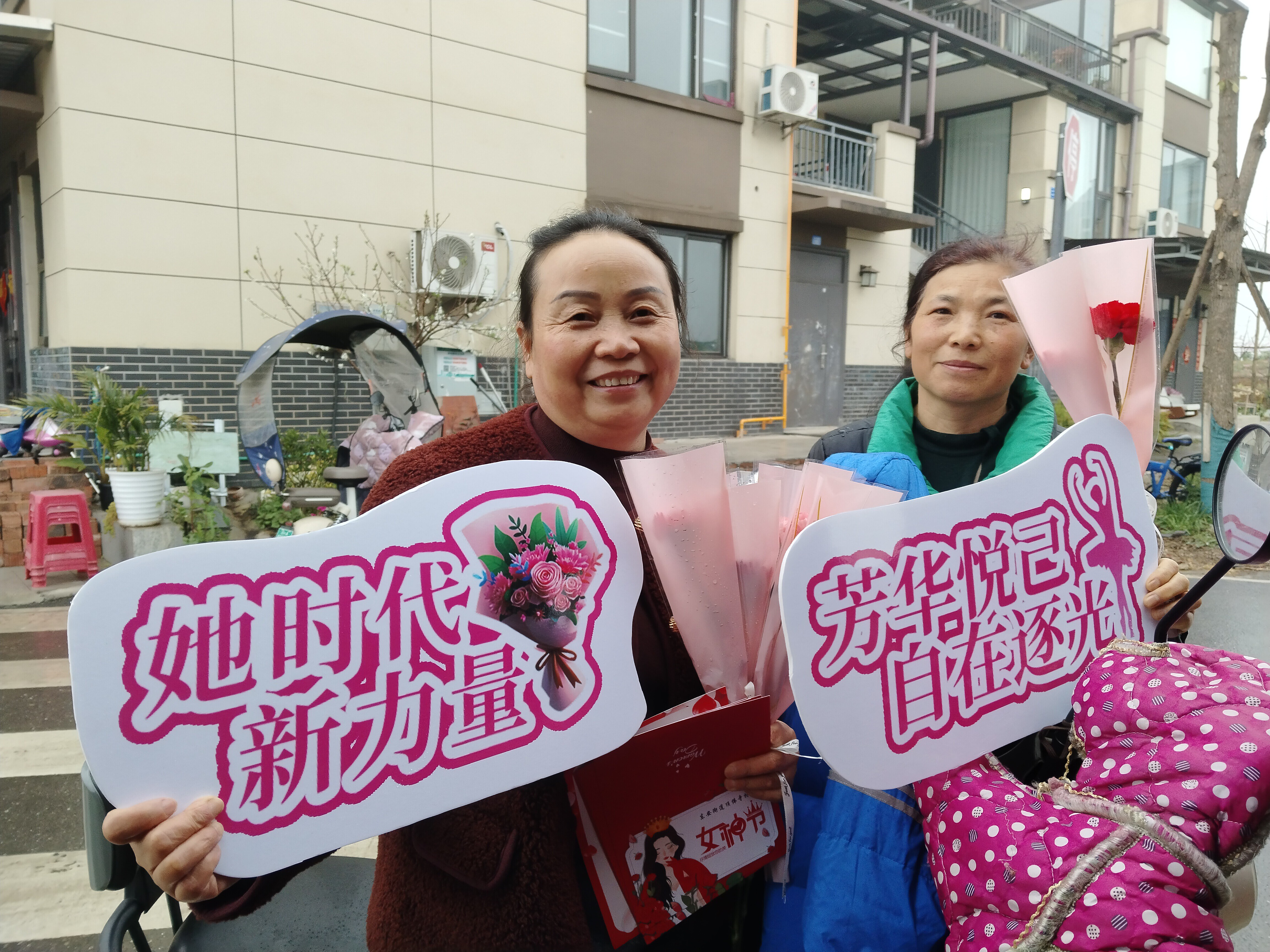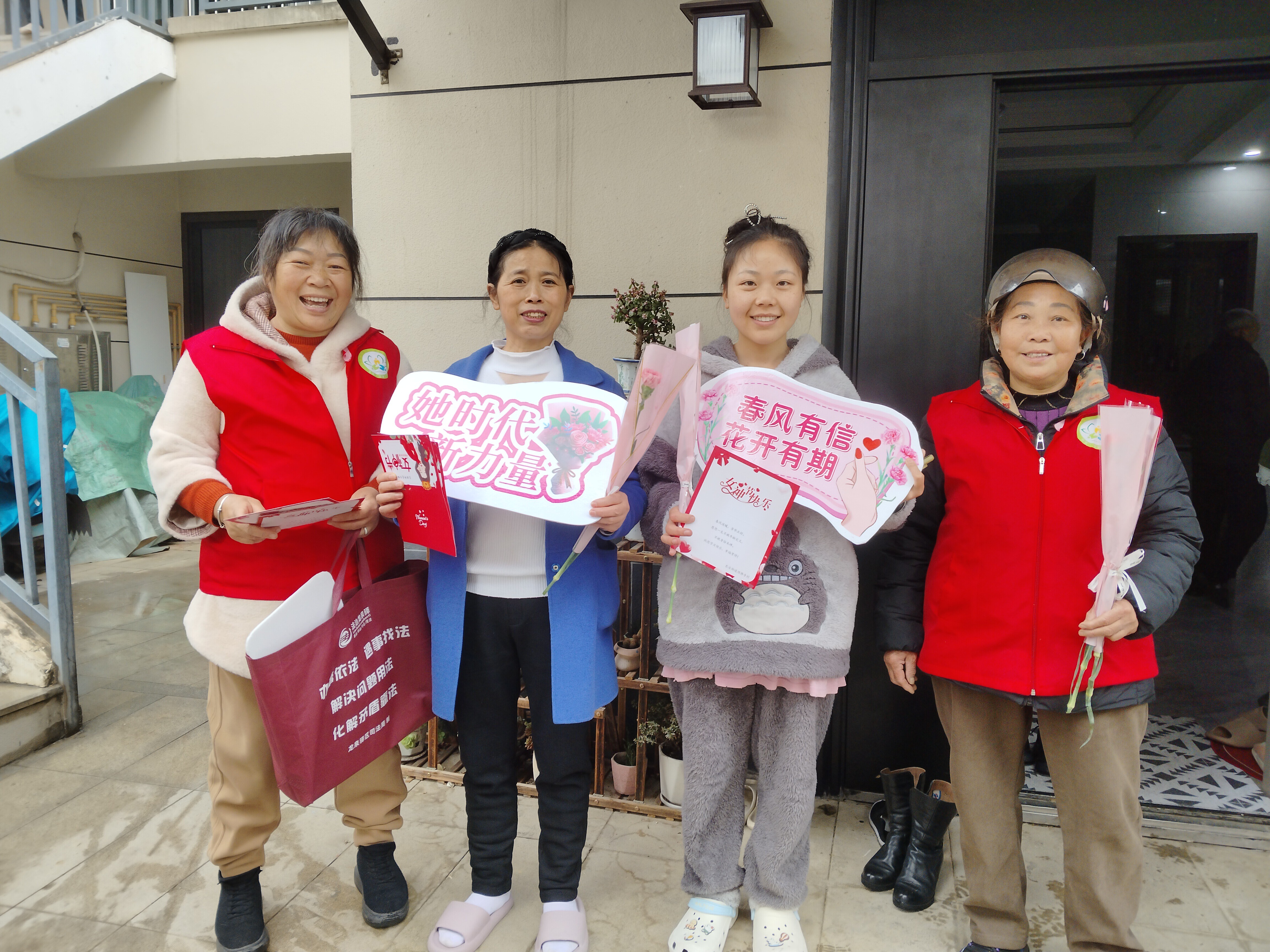 筹备就绪后,志愿者们兵分三路,带着精心包装的鲜花、手写的祝福贺卡,走进辖区各个院落、家家户户,开展入户走访慰问。“阿姨,节日快乐!这是给您的节日礼物,祝您身体健康、笑口常开!”每到一户,志愿者们都面带微笑、亲切问候,与女性村民促膝谈心,倾听她们的心声,将村集体的关怀与温暖直抵人心。一句句暖心的祝福,一束束娇艳的鲜花,让在场的每一位女性都感受到了节日的喜悦与被重视的幸福感。