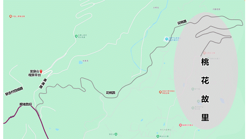 美满路如遇拥堵,可经花桃路绕行前往桃花故里景区。