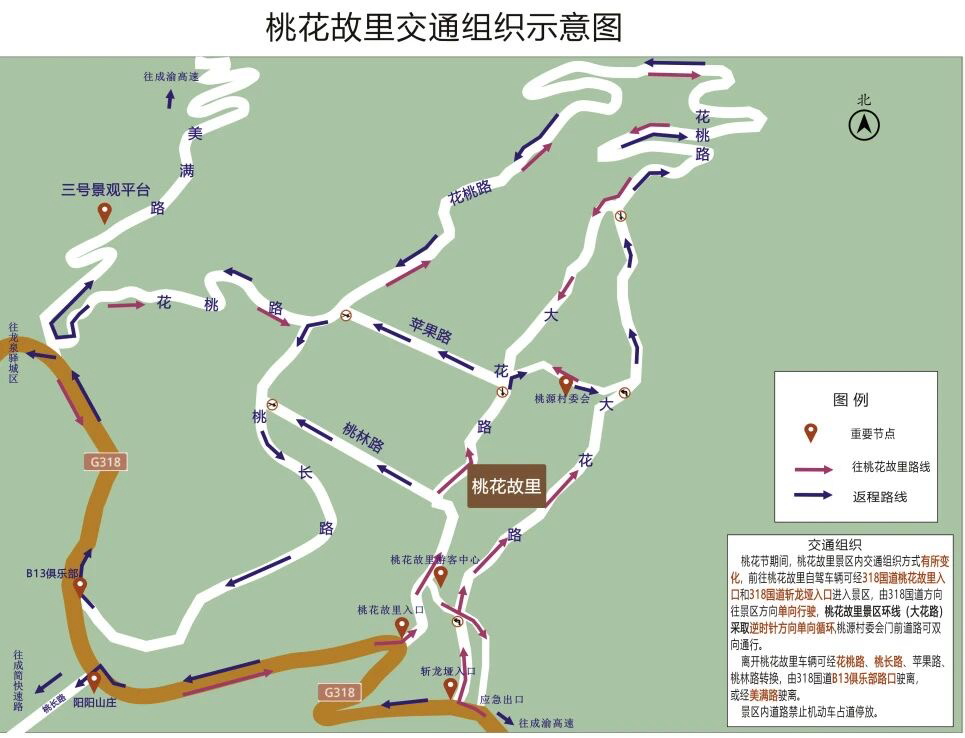 温馨提示:桃花荟期间,人、车流量较大,建议广大市民朋友合理安排时间,错峰出行。出行前可通过百度地图、高德地图等导航软件提前规划路线,避开拥堵路段。