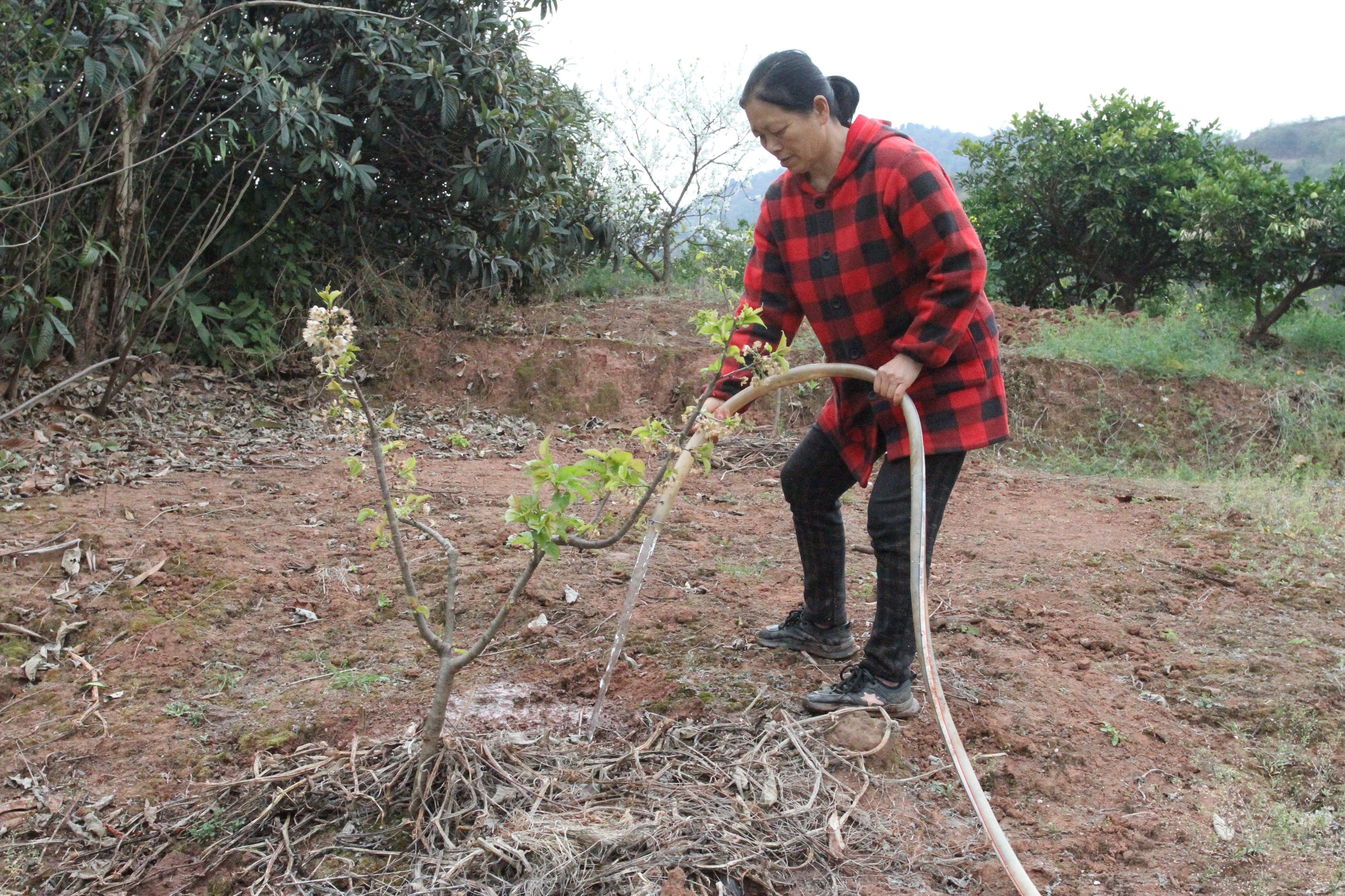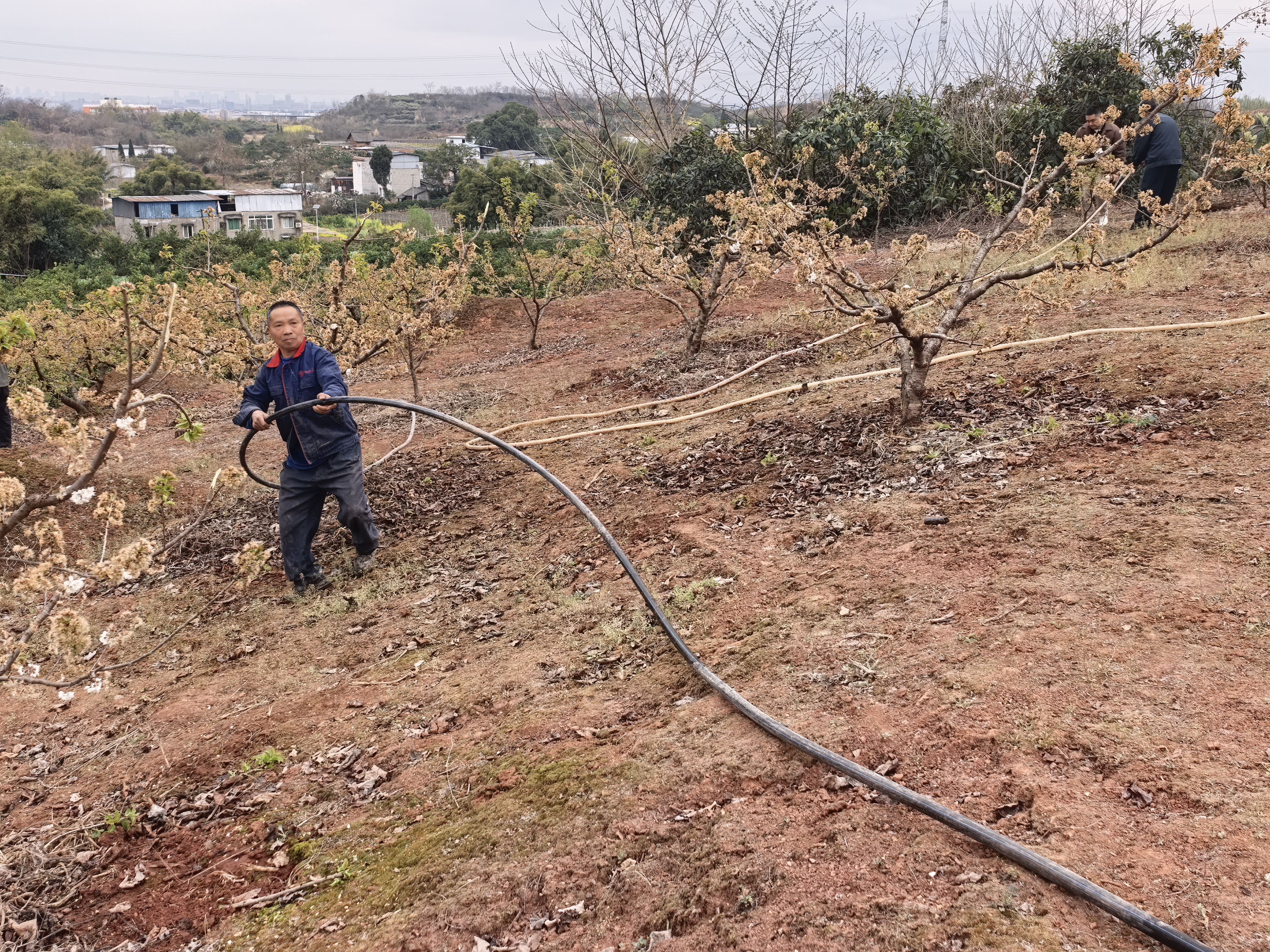 水利保障是否到位,农户最有发言权。在马坝村4组的樱桃园里,农户们正忙着将水管拖至树下,有条不紊地开展灌溉作业,一派繁忙的春耕景象。“今年雨水少,一开始还担心灌溉用水不够,现在来水特别充足,水塘里都蓄满了水,心里一下子就踏实了。”4组组长李贞雄的话语里满是欣慰,充足的灌溉水源,为今年的作物丰产吃下了“定心丸”。