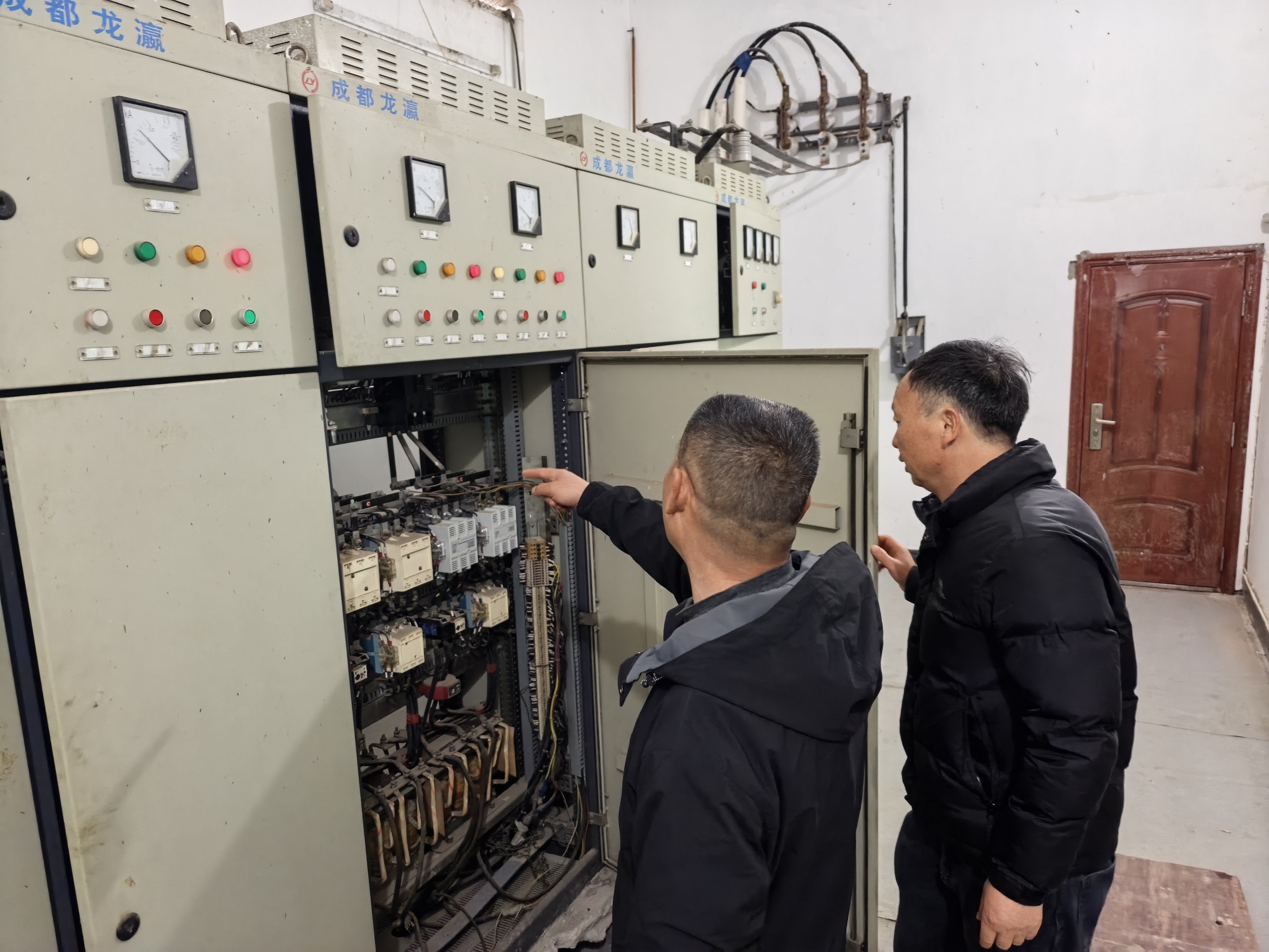 工作人员在雷打山一级提灌站检查设备