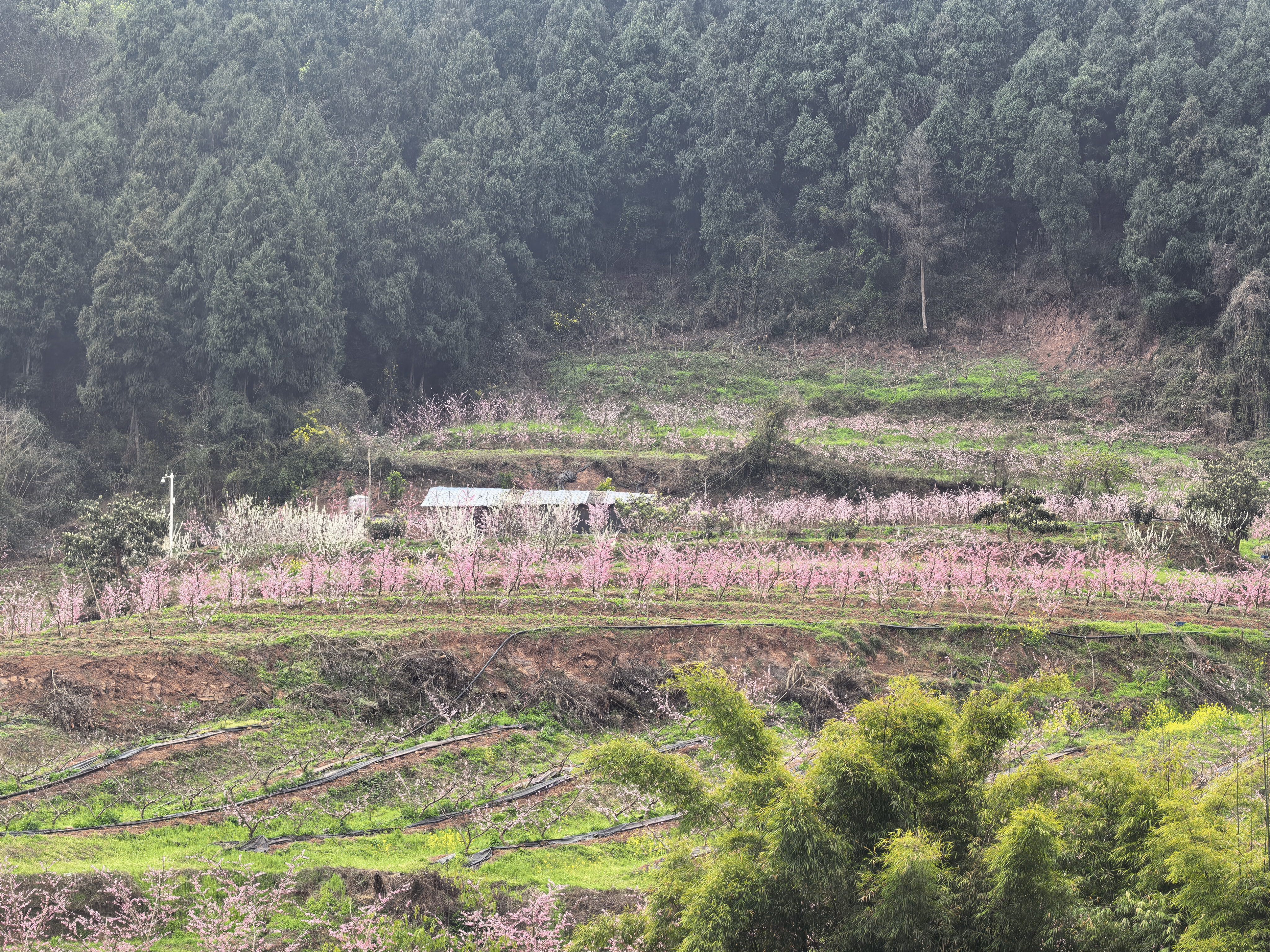 走进同兴村,山间桃花开得热烈烂漫,粉白相间的花朵缀满枝头,微风拂过,花瓣轻舞,空气中弥漫着清甜花香。放眼望去,对面山坡层层叠叠的粉色花海连绵起伏,与青山相映成趣,一步一景皆是诗意,且游人稀少,漫步其间,独享春日宁静,随手一拍都是氛围感大片。