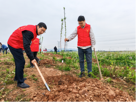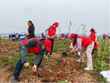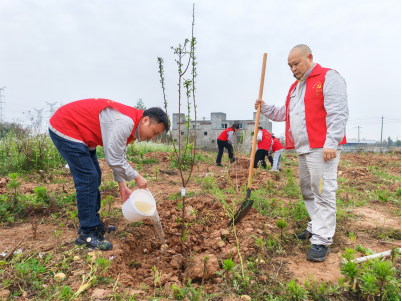 “咔嚓!”随着快门一声声响起,60余张笑脸在“生生不息·种下希望”的彩色背景板前定格。3月12日上午9点,龙泉驿区柏合街道二河村蔬菜基地的田垄上,早已是一片跃动的“红色海洋”。来自柏合街道机关党委与中创新航科技(成都)有限公司、亚普股份成都分厂、中建交通天合花园项目、成都捷翼汽车零部件有限公司、阳光铝制品有限公司、成都鼎尖药业等12家辖区企业的党员志愿者们,身穿红马甲,手持铁锹水桶,在春日里种下200余株李子树苗,用“党建红”为大地披上“生态绿”。