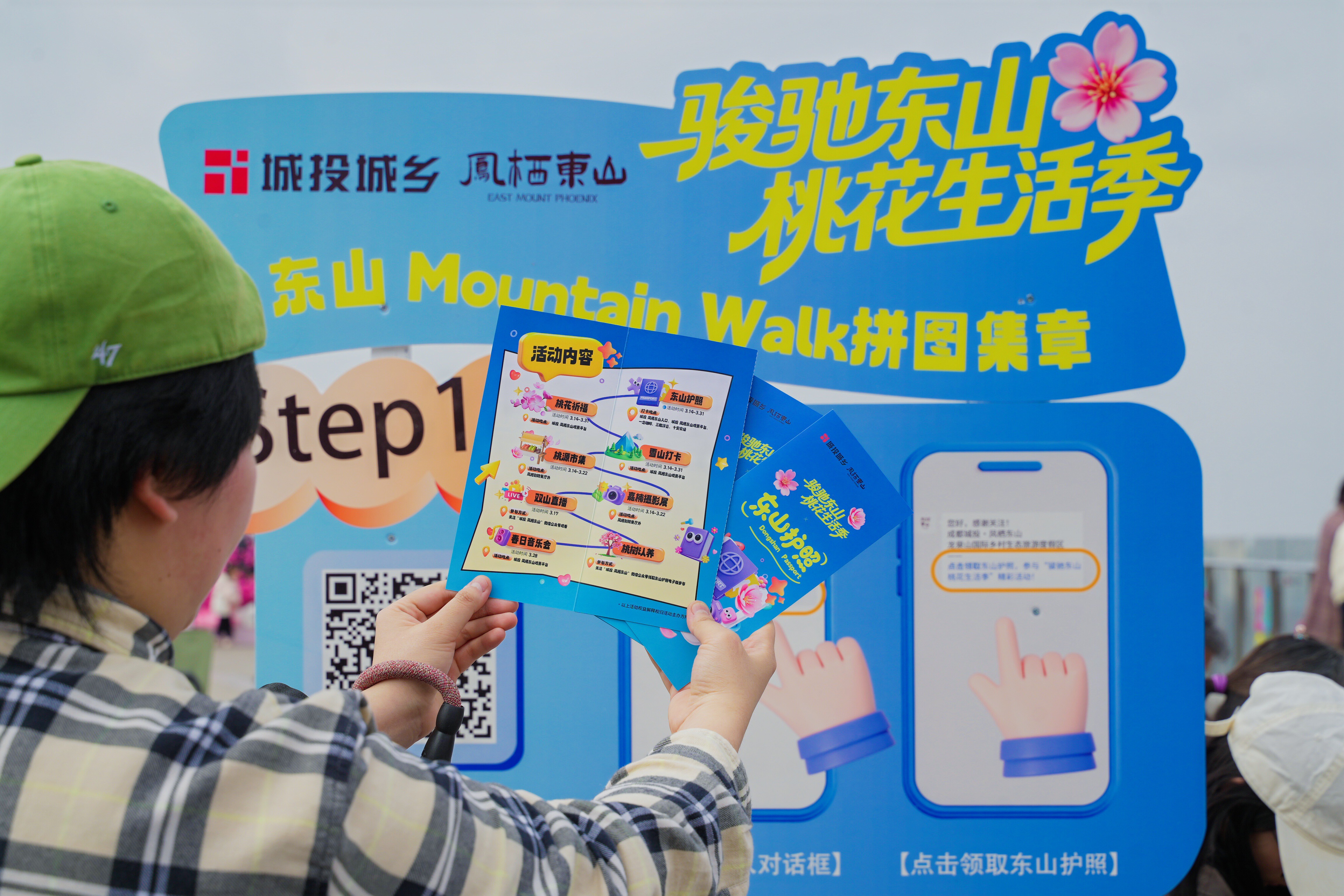 一旁,《东山护照》的集章活动也吸引了众多“东山客”的热情参与。大家手持“护照”,穿梭于各个打卡点之间,收集的不仅是印章,更是一份份独特的东山记忆。集齐印章后,还能兑换一念咖啡、凤栖别院餐饮、十安农场等地的专属优惠,让春日之旅实惠满满。
