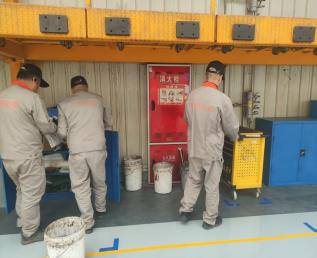 问题隐患2:分解车间内的消火栓被杂物遮挡。