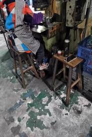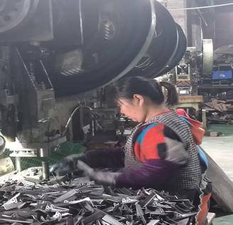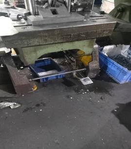 问题隐患3:冲床脚踏板无防护盖,操作人员未佩戴耳塞。