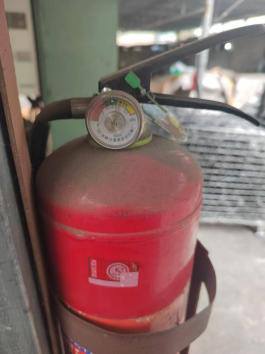 问题隐患1:车库门口灭火器压力指到黄色区域。